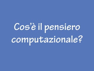 Il pensiero computazionale è un approccio per risolvere problemi e progettare sistemi attraverso un modo di pensare algoritmico. Il coding, visto come una lingua per interagire con i computer, aiuta i bambini a sviluppare abilità di problem solving e creatività. Coderdojo è un'iniziativa che insegna programmazione ai ragazzi, promuovendo l'accesso alla tecnologia e combattendo gli stereotipi di genere.