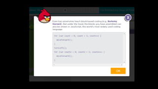 This document discusses how coding, STEM, and global collaboration can lead to exponential learning. It describes a program where students in Roanoke County Schools participated in various coding activities in small groups using resources like Code.org, Scratch, and robots. It then outlines a global summer program called Level Up Village that offers virtual 1:1 courses between students worldwide in areas like programming, engineering, languages, and more. The document encourages bringing coding to schools and lists local contacts for learning more.