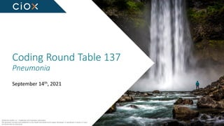 This document discusses a webinar on pneumonia coding. It provides information on different types of pneumonia including aspiration pneumonia, bacterial pneumonia, and viral pneumonia. It describes clinical evaluation and treatment for these types of pneumonia. It also discusses new guidelines published in 2019 for the treatment of community-acquired pneumonia from the Infectious Diseases Society of America and American Thoracic Society.