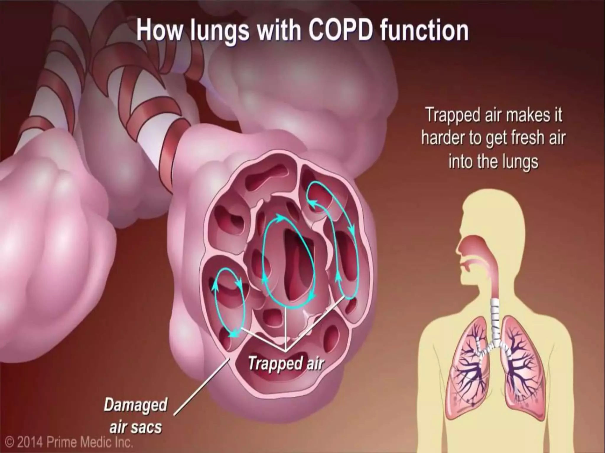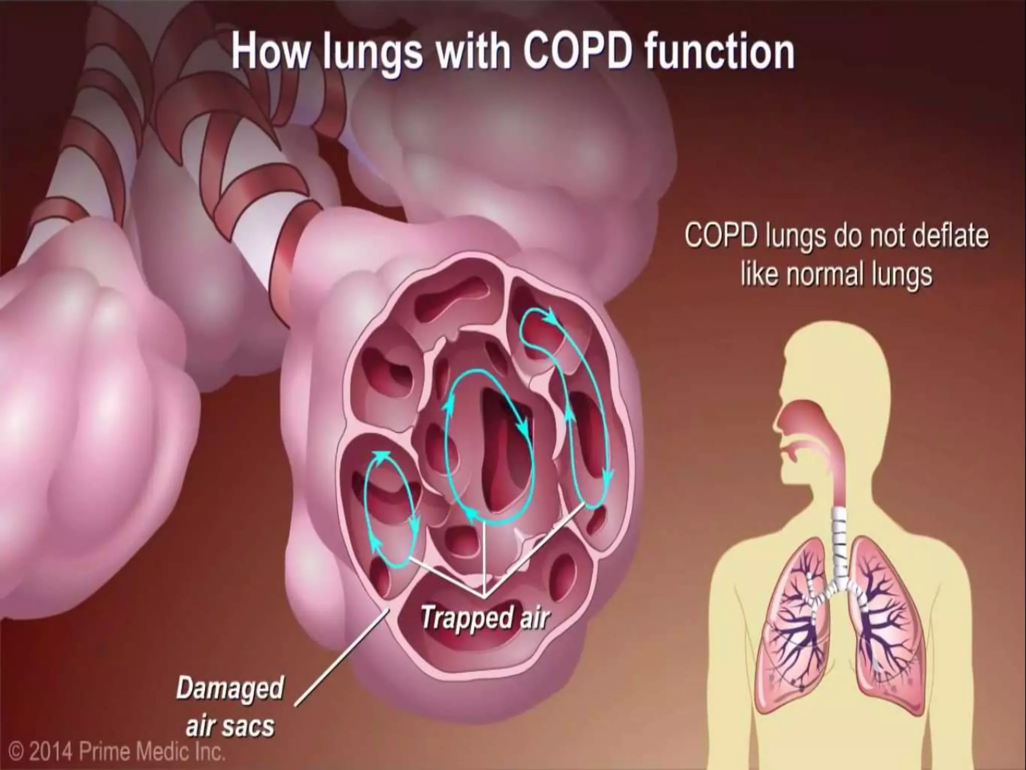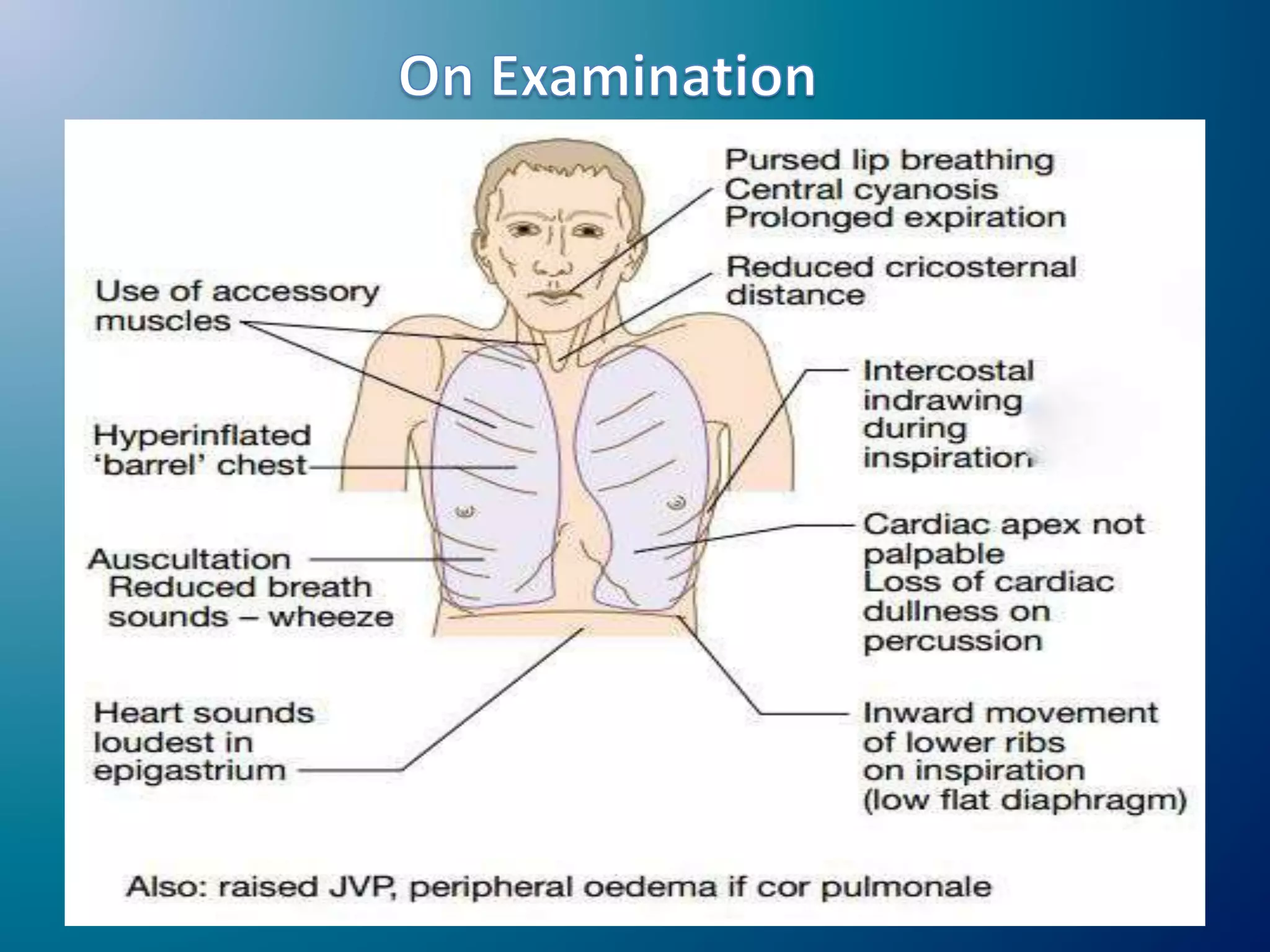 Chronic Obstructive Pulmonary Disease (COPD) is characterized by airflow limitation due to chronic bronchitis and emphysema, with symptoms including cough, dyspnea, and wheezing, often leading to significant health decline and comorbidities. Patients can be classified as 'blue bloaters' (chronic bronchitis) or 'pink puffers' (emphysema) based on their symptoms and physiological responses, with a need for careful management including smoking cessation and bronchodilator therapy. Exacerbations are typically triggered by infections and require prompt intervention with short-acting bronchodilators, systemic corticosteroids, and antibiotics, along with possible hospitalization in severe cases.