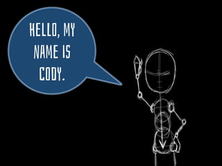 This document is a profile and portfolio for an artist named Cody Hunter. It provides biographical information about Cody, including being born in Titusville, Florida and growing up near Disney, which inspired his love of animation. It outlines Cody's educational path, including taking art classes in high school and college. The portfolio highlights Cody's skills and areas of focus, including drawing, painting, and 3D artwork. It expresses Cody's goals and how he will achieve them through practice, dedication, and maintaining a brand mantra of persevering through challenges. Contact information is provided at the end.