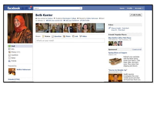 This document summarizes a workshop led by Beth Kanter on leading foundations and nonprofits in a networked world. Kanter discusses the importance of adopting a network mindset and using social networks and online strategies to further social change goals. She outlines levels of maturity for networked organizations from crawling to flying. Kanter also emphasizes the importance of becoming a data-informed organization and using metrics to improve strategies and measure impact over time. The workshop provided strategies for foundations to better connect with stakeholders online, engage partners and influencers, and integrate social media and networks into their overall operations.