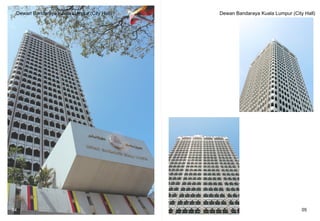 The document discusses several notable buildings in Kuala Lumpur, Malaysia, including the Dayabumi Complex, Tabung Haji Building, and Maybank Tower. It provides brief descriptions of the structures and their locations in the city.
