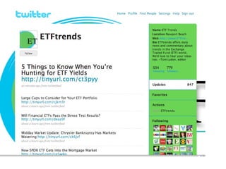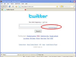 The document discusses strategies for using Twitter effectively for communication and marketing purposes. It provides definitions of basic Twitter terms and tools for monitoring conversations. It recommends listening first to understand what interests your audience before engaging. Finally, it suggests using Twitter to build relationships, share useful information and engage customers through contests, promotions and addressing problems.