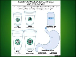 Starbucks failed previously due to abandoning its core brand identity and customer value proposition through overexpansion. It opened too many stores too quickly, standardized processes, and lost the premium specialty coffee experience it was known for. Now, Starbucks risks repeating history by introducing large drink sizes, instant coffee, drive-thrus without seating, and self-serve coffee that further detach the brand from its roots.
