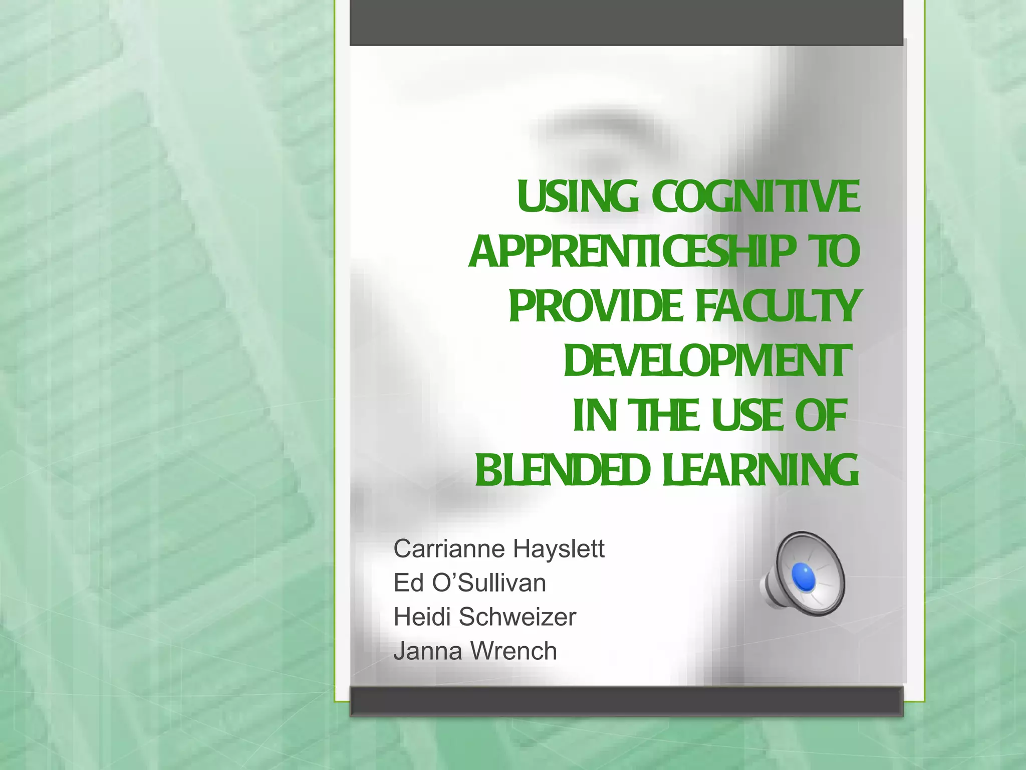 The document describes how Marquette University used cognitive apprenticeship principles to provide faculty development in blended learning. Faculty participated in a hybrid course that modeled blended learning techniques. Through coaching, scaffolding, articulation and reflection, participants learned how to design their own blended courses. Feedback indicated the cognitive apprenticeship approach was effective, with many faculty reporting they would adopt techniques in their own teaching.