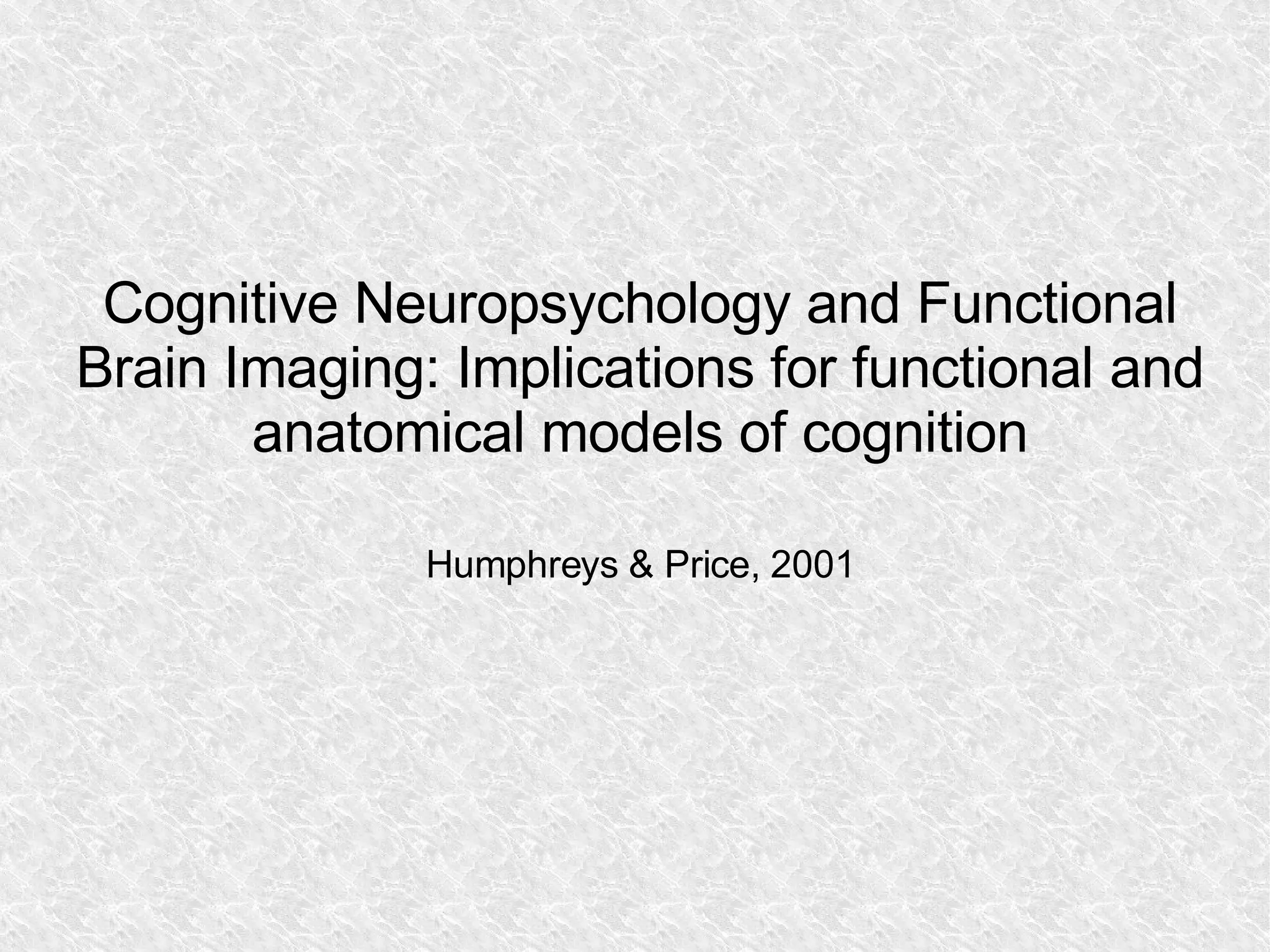 The document discusses how cognitive neuropsychology uses functional brain imaging techniques and data from patients with brain lesions to inform models of normal cognition and its neural underpinnings. Functional imaging allows more precise localization of brain areas involved in cognitive tasks compared to other neuropsychological methods. While early models linked specific cognitive functions to brain regions based on patient data, modern approaches recognize interactive and distributed neural systems and acknowledge limitations of making inferences from single cases or accidental brain lesions.