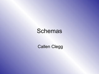 Schemas are mental structures that help organize and simplify our knowledge of the world. They come from the Greek word "skhema" and were first studied by Frederic Bartlett in 1932 as part of constructive memory. Schemas are used to categorize information visually based on stereotypes of age, race, gender, and more. An activity had participants look at images of an office and a car collision then write down what they remembered to analyze how schemas influence memory. People tend to remember details that fit their schemas and sometimes fabricate details that belong in the theme.