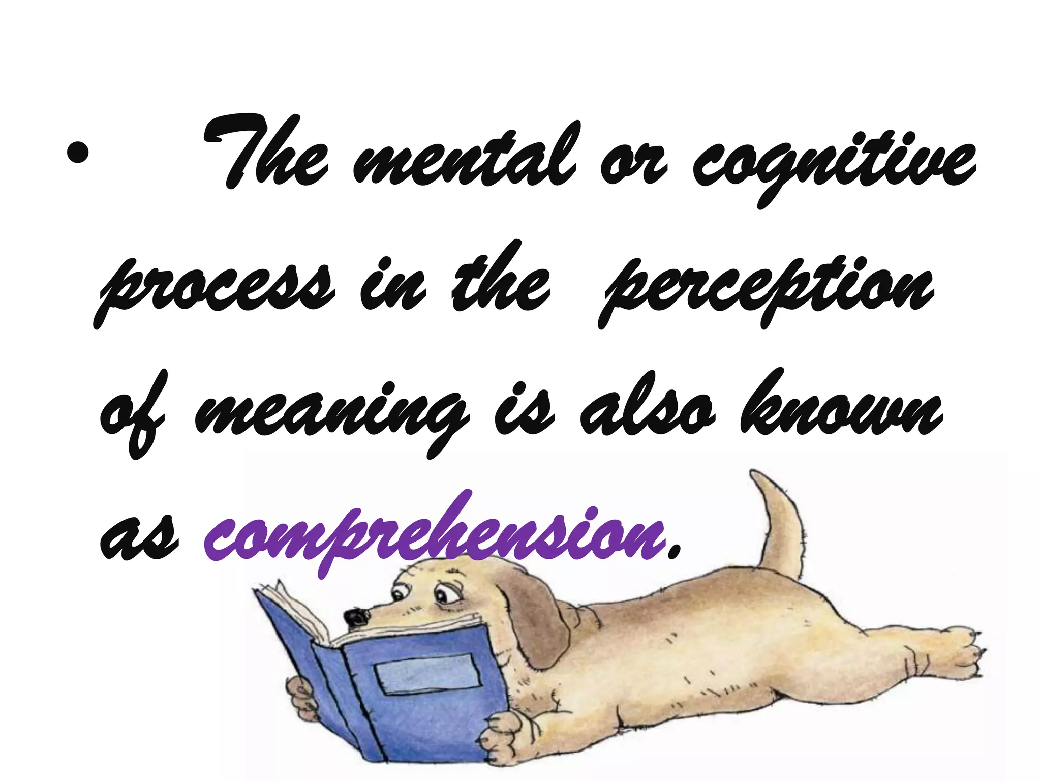 Reading comprehension involves two basic cognitive steps: 1) word recognition of written symbols, and 2) fusion or interpretation of those symbols to construct meaning. There are four levels of comprehension - literal, interpretative, applied, and evaluative. Meta-cognition, or self-aware reading, is characterized by self-awareness, careful reading and retention, making assumptions or hypotheses before reading, and deliberately reflecting on, questioning, classifying, summarizing and predicting the text using techniques like SQ3R (survey, question, read, recite, review).