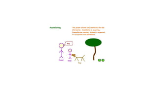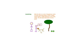 Cognitive psychology is the study of mental processes such as attention, memory, perception, problem solving, and thinking. Jean Piaget developed the influential theory of cognitive development which proposes that children's thinking progresses through four discrete stages - sensorimotor, preoperational, concrete operational, and formal operational - as their cognitive schemas become more complex through assimilation and accommodation. Piaget's theory focuses on how children actively construct knowledge and understanding from their environment through hands-on learning and exploration.