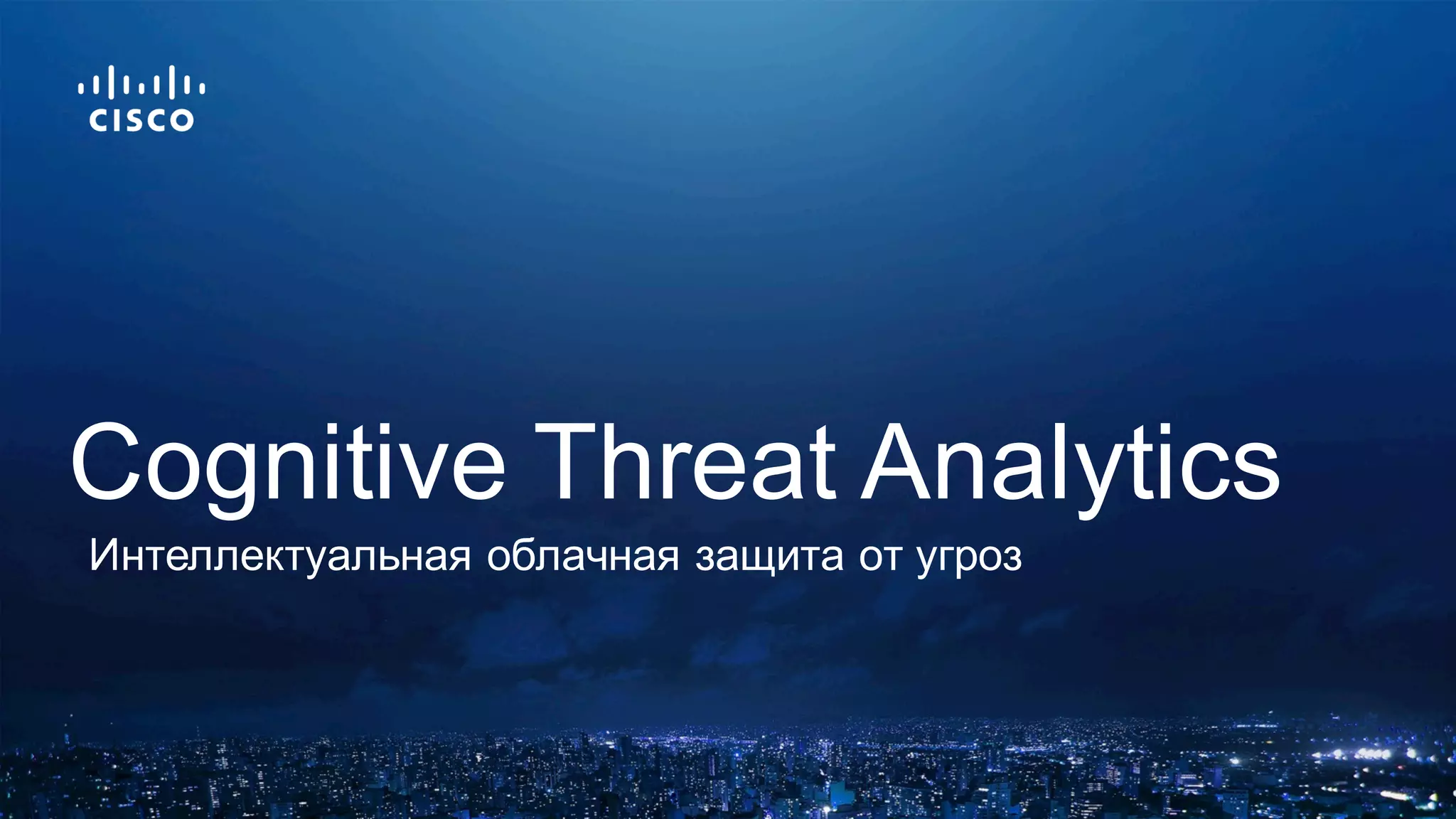 Документ описывает современные угрозы кибербезопасности и методы их обнаружения, применяемые в рамках решения Cognitive Threat Analytics от Cisco. Основное внимание уделяется различным вектором атак, методам обхода традиционных систем безопасности и современным подходам к анализу угроз в веб-трафике. Cisco предлагает интегрированные решения для обнаружения аномалий и повышения эффективности реагирования на инциденты киберугроз.