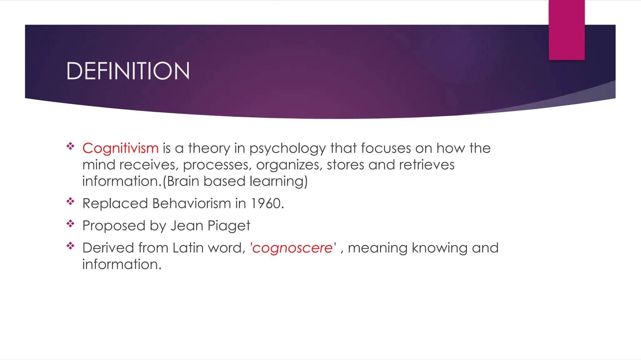 Derived from Latin word, 'cognoscere' , meaning knowing and