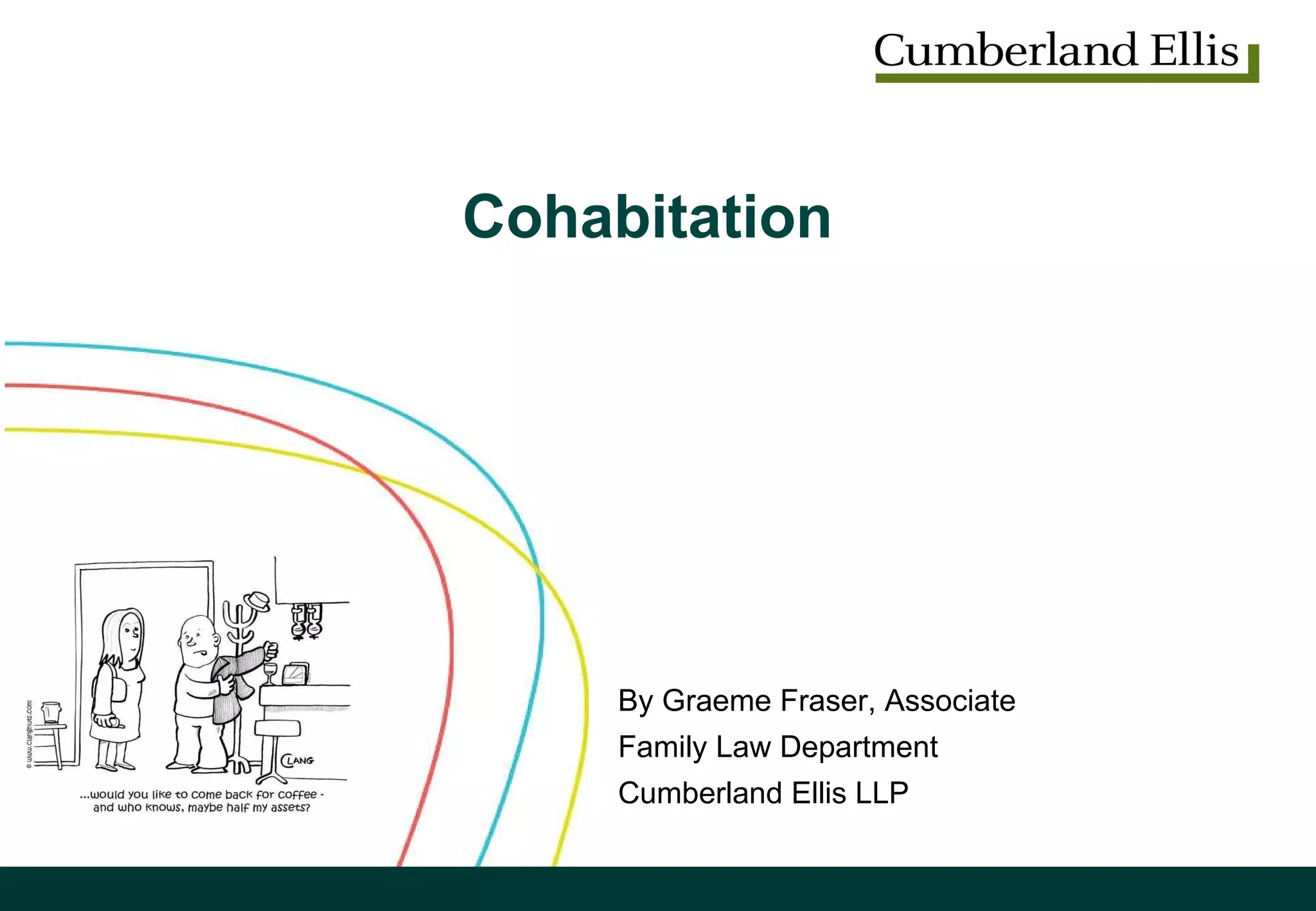 The document discusses various myths about cohabitation rights and provides examples of case studies to illustrate how courts have ruled on property disputes between unmarried couples. It finds that unlike married couples, unmarried couples have few rights to each other's property by default. However, courts have considered implied trusts and promissory estoppel claims in cases where one partner contributed financially or relied on promises about shared ownership. The outcomes depend on evidence presented about intentions, financial contributions, and actions taken in reliance on representations made by the other partner.