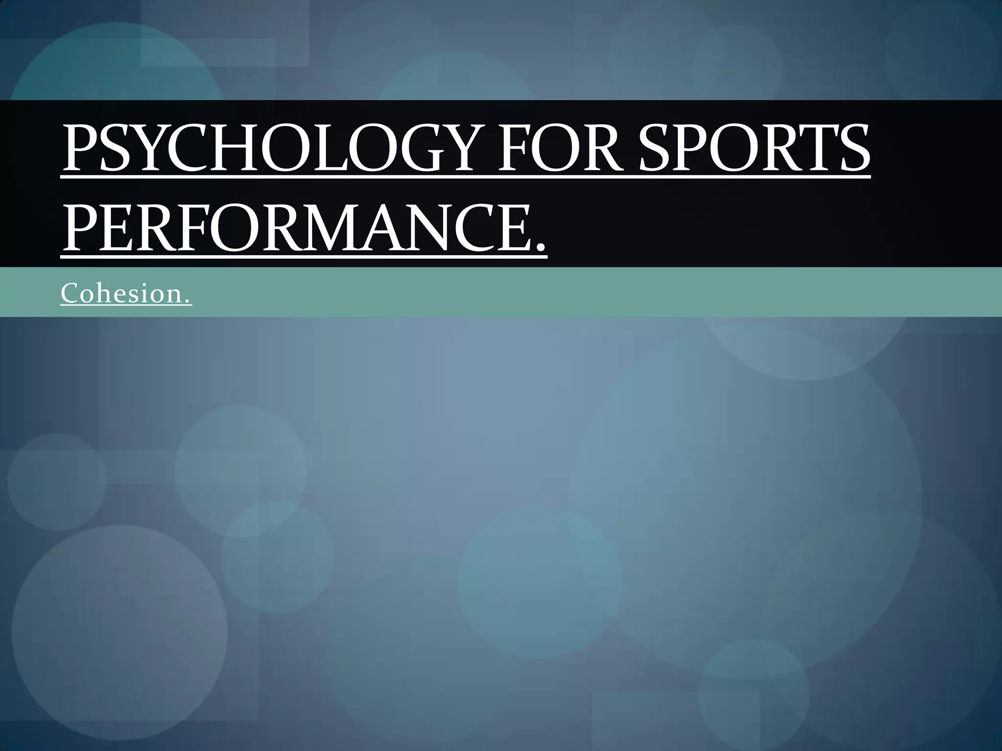 The document discusses cohesion in sports teams and the coach's role in creating an effective team climate. It defines cohesion as the forces that compel members to remain in a group. There are two types of cohesion - task cohesion, which is commitment to achieve common goals like winning, and social cohesion, which is the degree team members like each other. The coach assesses team climate through questionnaires and sociograms, which map members' relationships, and works to build an effective climate to improve performance.