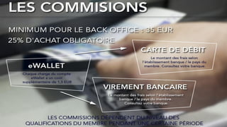 Le document traite de l'évolution des systèmes de paiement, en mettant l'accent sur le matching bonus et le plan de récompense. Il aborde également les stratégies d'engagement dans un pool global de distribution des récompenses. L'ensemble vise à améliorer les incitations financières pour les participants.
