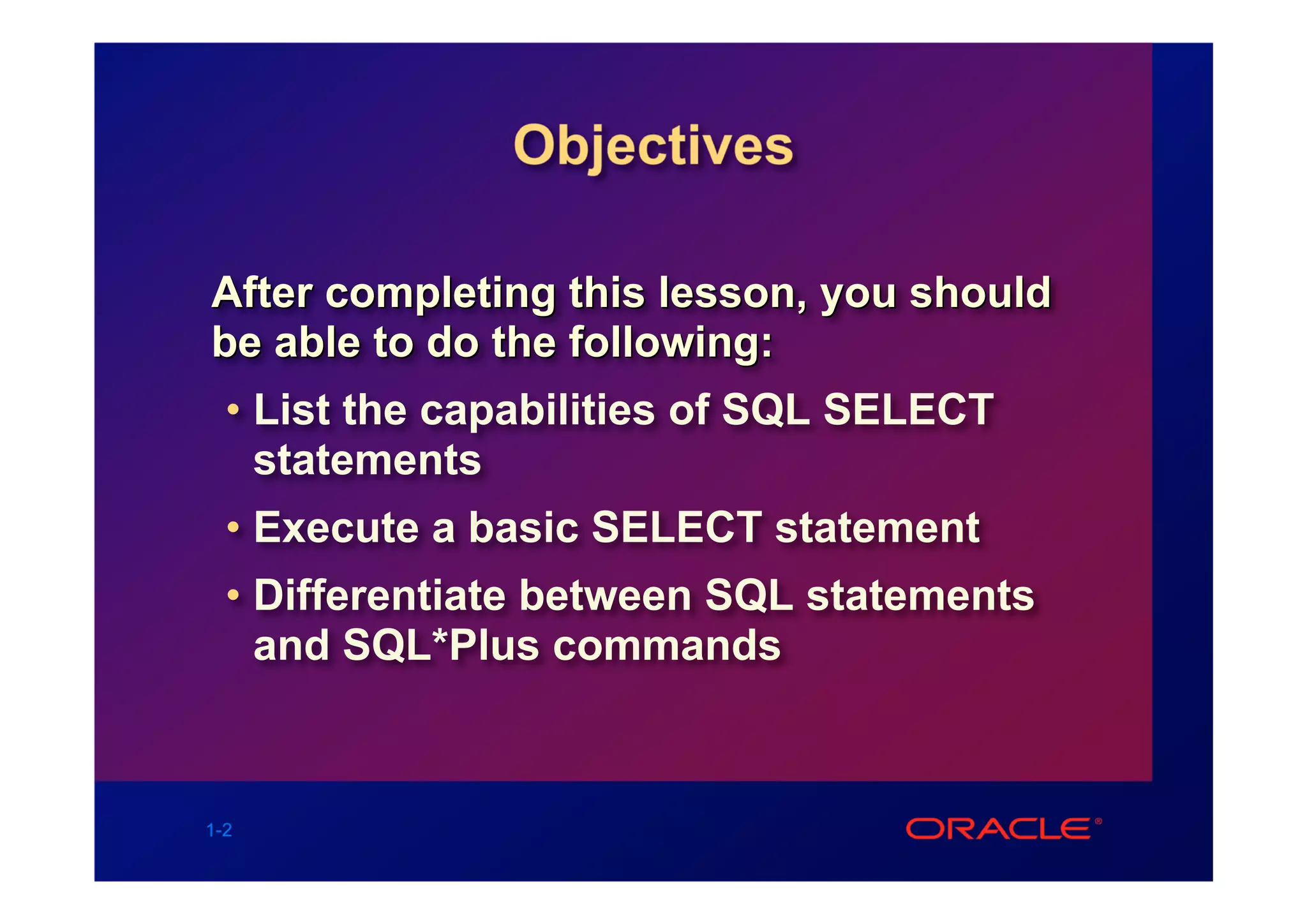 This document provides an overview of basic SQL statements and SQL*Plus commands. It covers the capabilities of SELECT statements, including selecting all columns, specific columns, column aliases, arithmetic expressions, and literal strings. It also discusses null values, the concatenation operator, and eliminating duplicate rows with DISTINCT. Finally, it differentiates between SQL statements and SQL*Plus commands, describing how to log in to SQL*Plus, display table structure, edit SQL, and execute files of SQL statements.