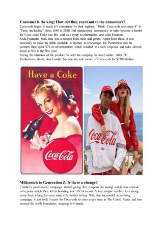 Coca-Cola, established in 1886 by Dr. John Pemberton, transformed from a medicinal tonic to a leading global beverage brand over its 130-year history. After facing initial sales struggles, Asa Candler's innovative marketing strategies, including free samples, enabled rapid expansion and recognition, making Coca-Cola a household name. The company now boasts a revenue of $31.85 billion and is recognized by 94% of the world's population, solidifying its status as a leader in the beverage industry.