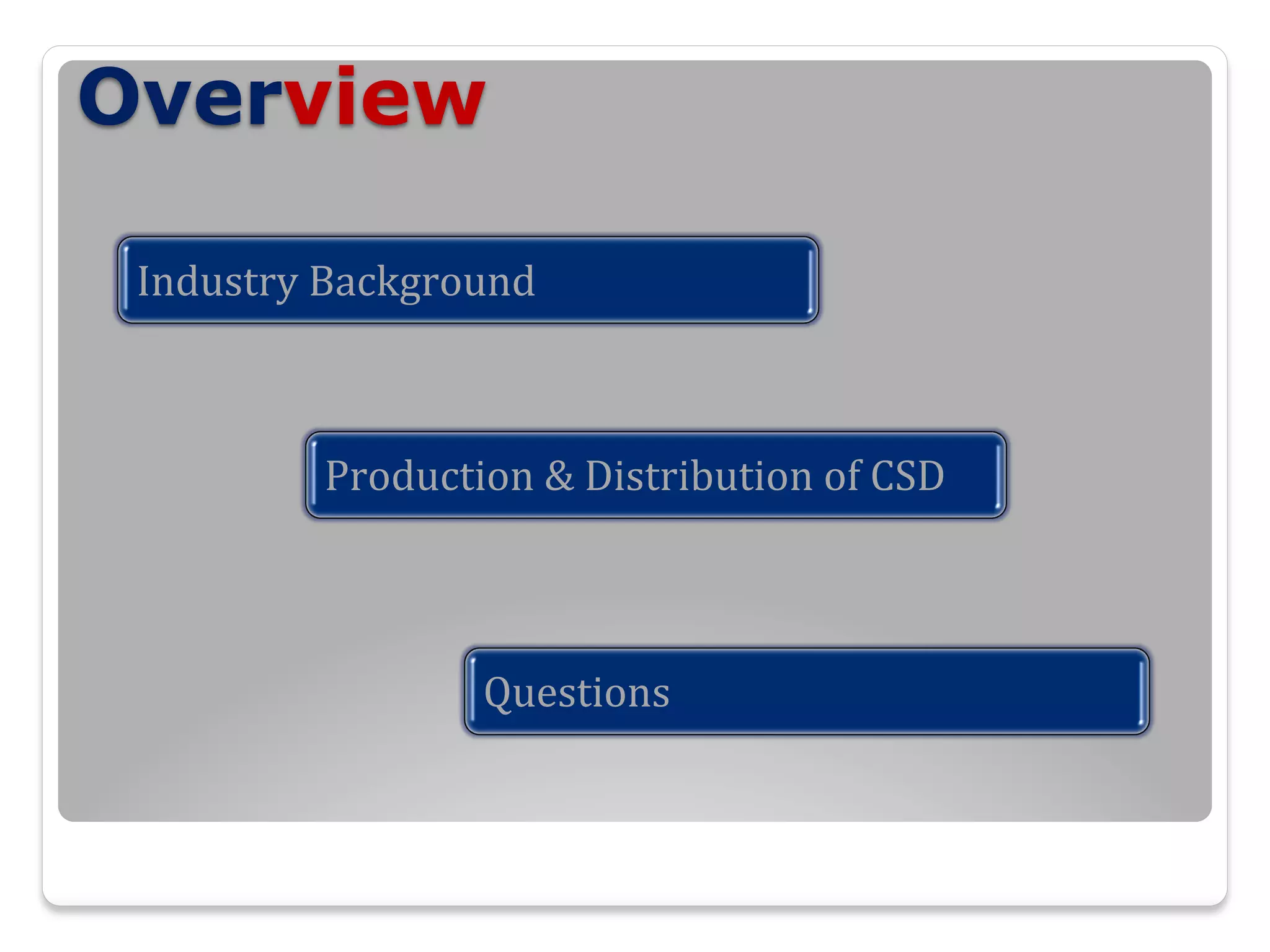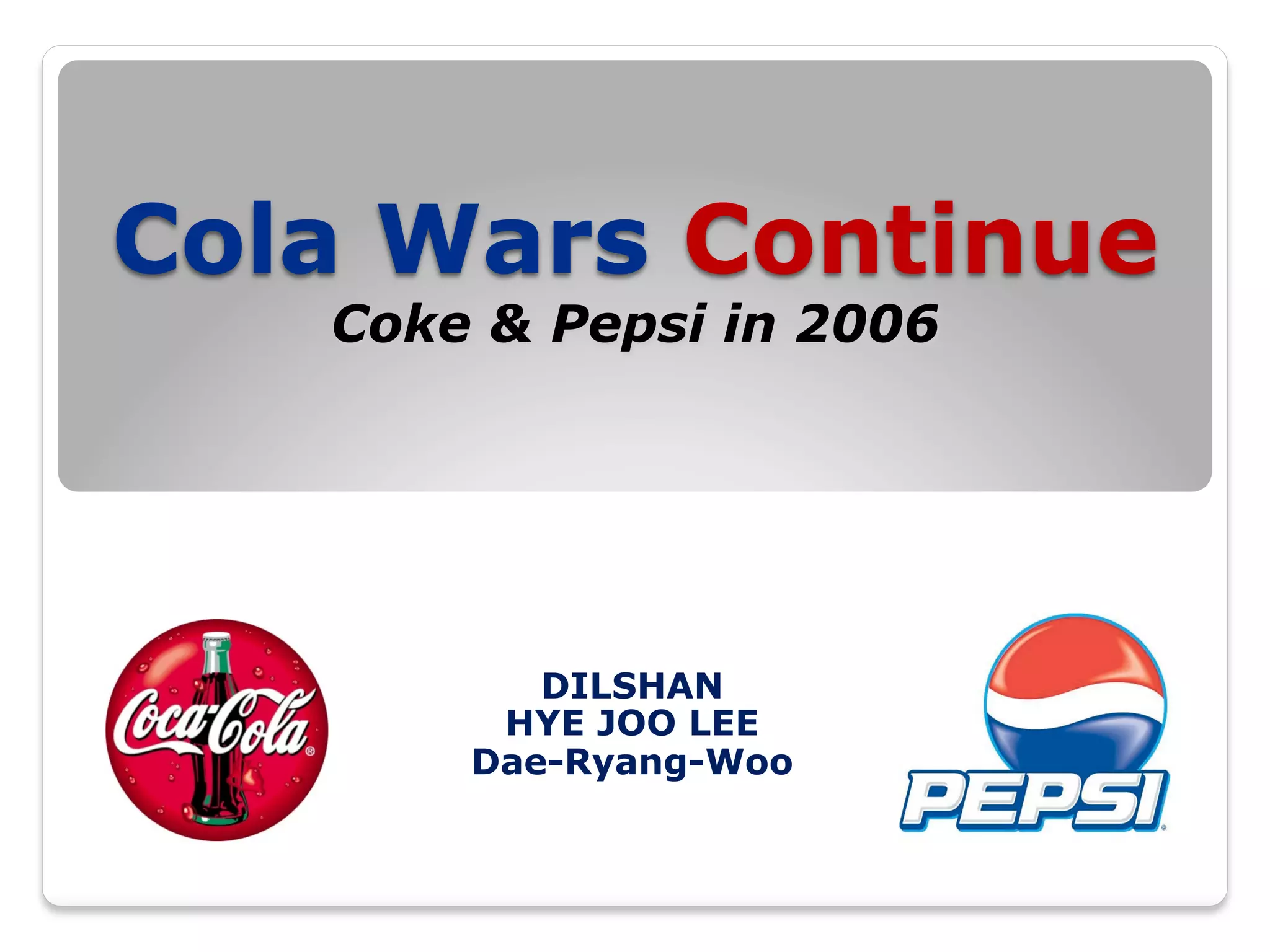 The document discusses the ongoing competition between Coca-Cola and Pepsi in the carbonated soft drink industry. It provides background on the industry structure, noting that Coke and Pepsi dominate as concentrate producers while bottling operations are carried out by other companies. The intense rivalry between Coke and Pepsi has driven up advertising spending and innovation, strengthening their brands while weakening smaller competitors. Despite declining demand for sugary drinks, Coke and Pepsi may be able to sustain profits by diversifying their product lines and marketing to address health consciousness.