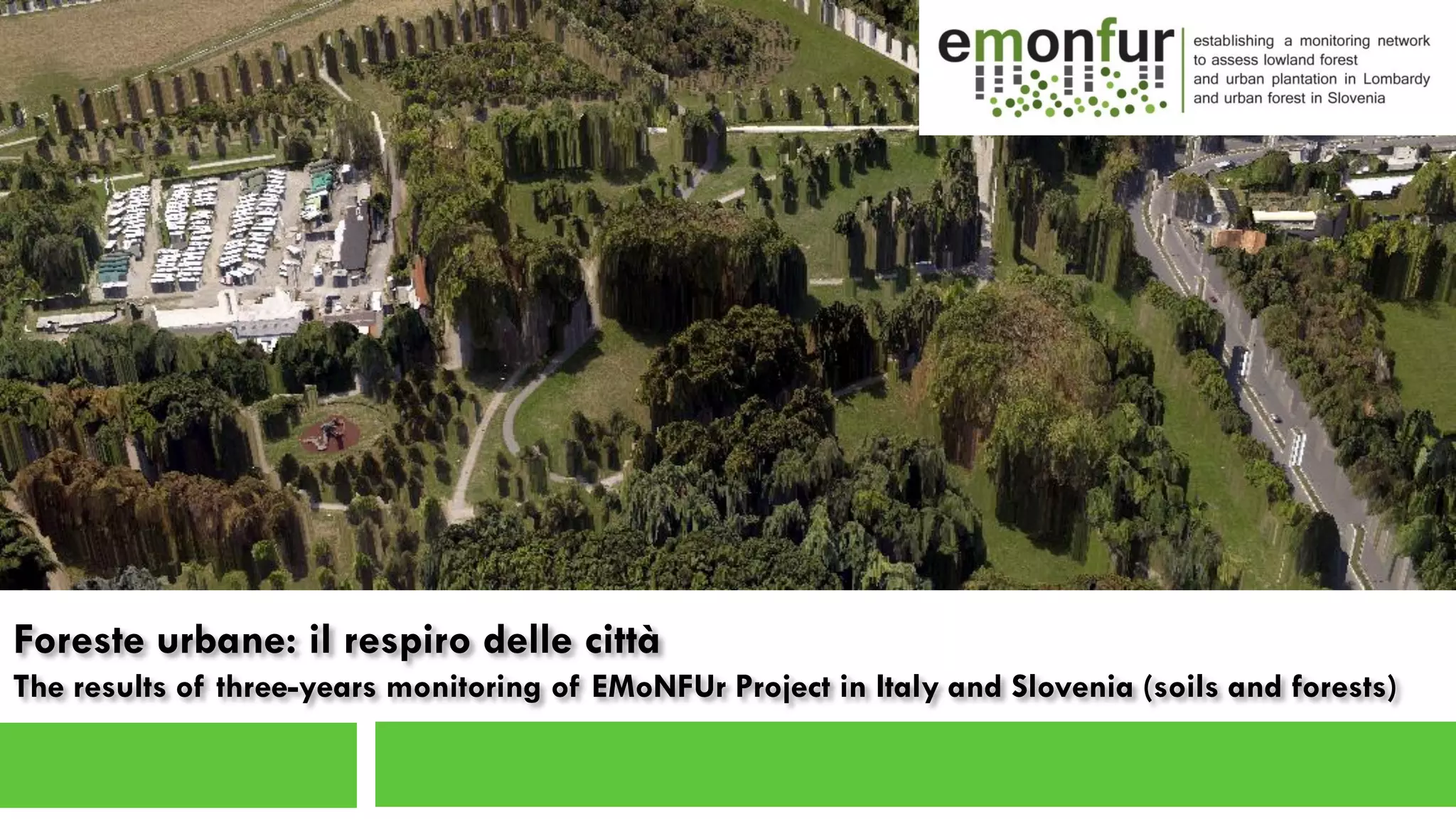 The document describes the monitoring protocols used for forests and soils in Italy and Slovenia as part of the EMoNFUr Project. The forest monitoring protocol involves surveying dendrometric parameters, carbon sequestration, deadwood, and biodiversity indicators. The soil monitoring protocol involves describing soil profiles, analyzing soil samples from topsoil and subsoil for properties like pH and organic carbon, and optionally sampling litter and testing for contamination. The protocols were harmonized between the two countries while allowing for differences in plot size and mandatory parameters. The monitoring will provide preliminary results on forest and soil conditions in urban areas.