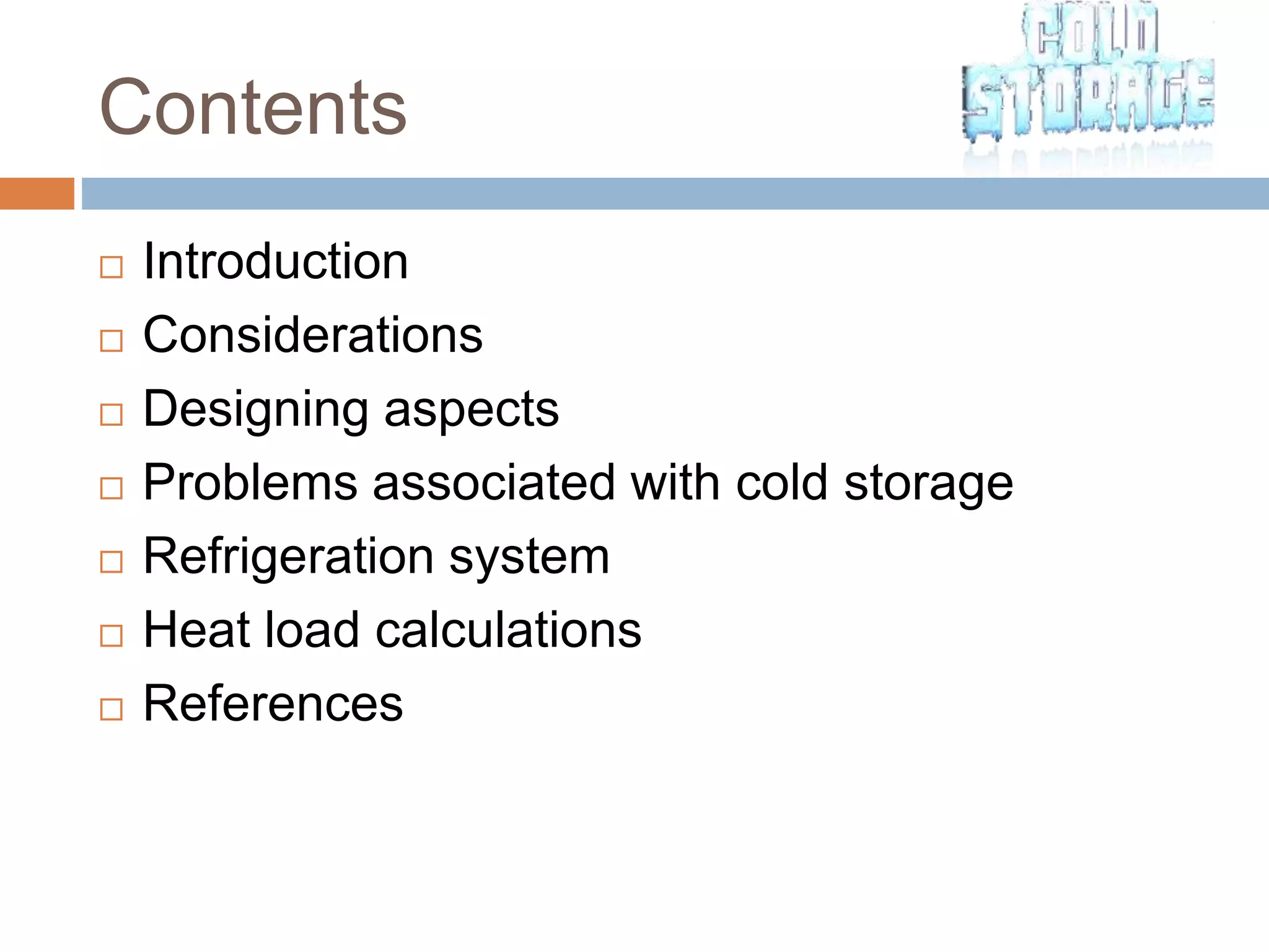The document outlines the design and considerations involved in creating a cold storage facility for perishable products, highlighting aspects such as site selection, refrigeration systems, heat load calculations, and storage space requirements. It also discusses the various types of cold storage, problems associated with refrigeration, and specific design elements necessary for optimizing performance. References to industry standards and academic sources are provided to support the information presented.
