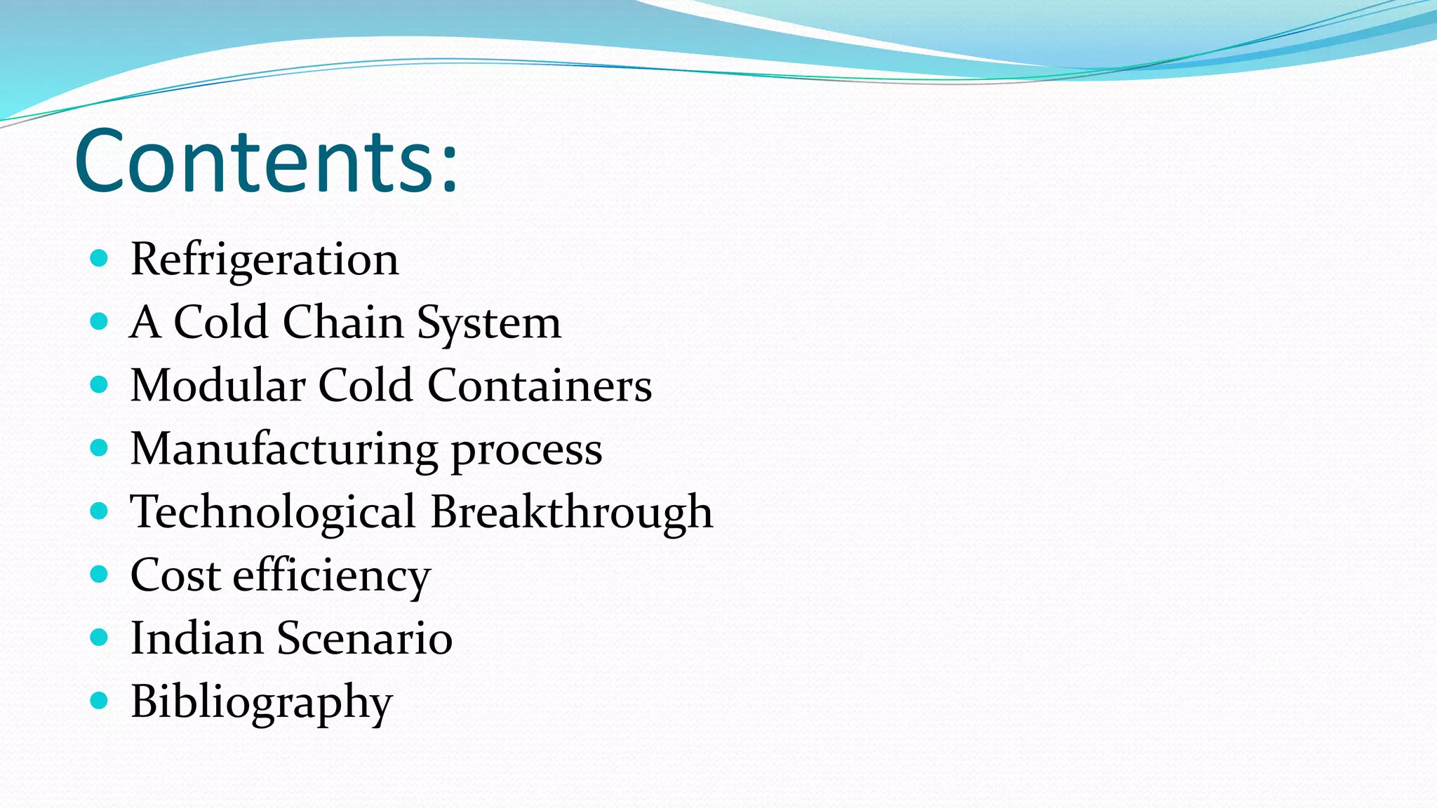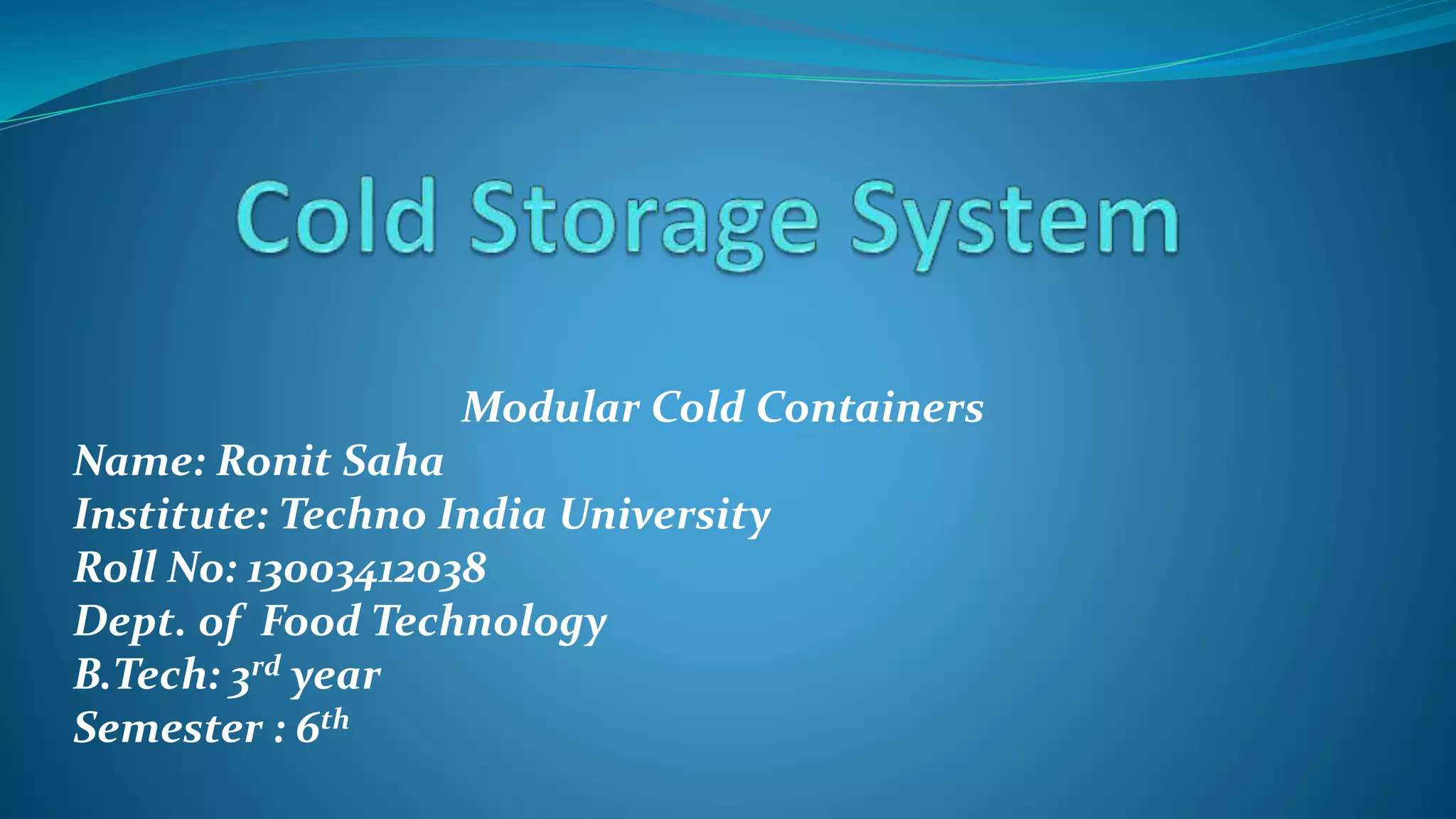 This document discusses modular cold containers for cold storage. It describes how the containers would be made of recycled plastic waste converted to carbon fiber, powered by solar panels and piezoelectric pads. The containers would be portable, low-cost storage modules that can be assembled as needed. Manufacturing would involve converting plastic waste to carbon fiber for construction and using solar and piezoelectric technologies for power. The design aims to provide an efficient, renewable cold storage solution for transporting perishable goods in India.