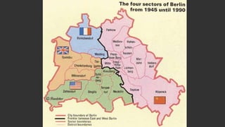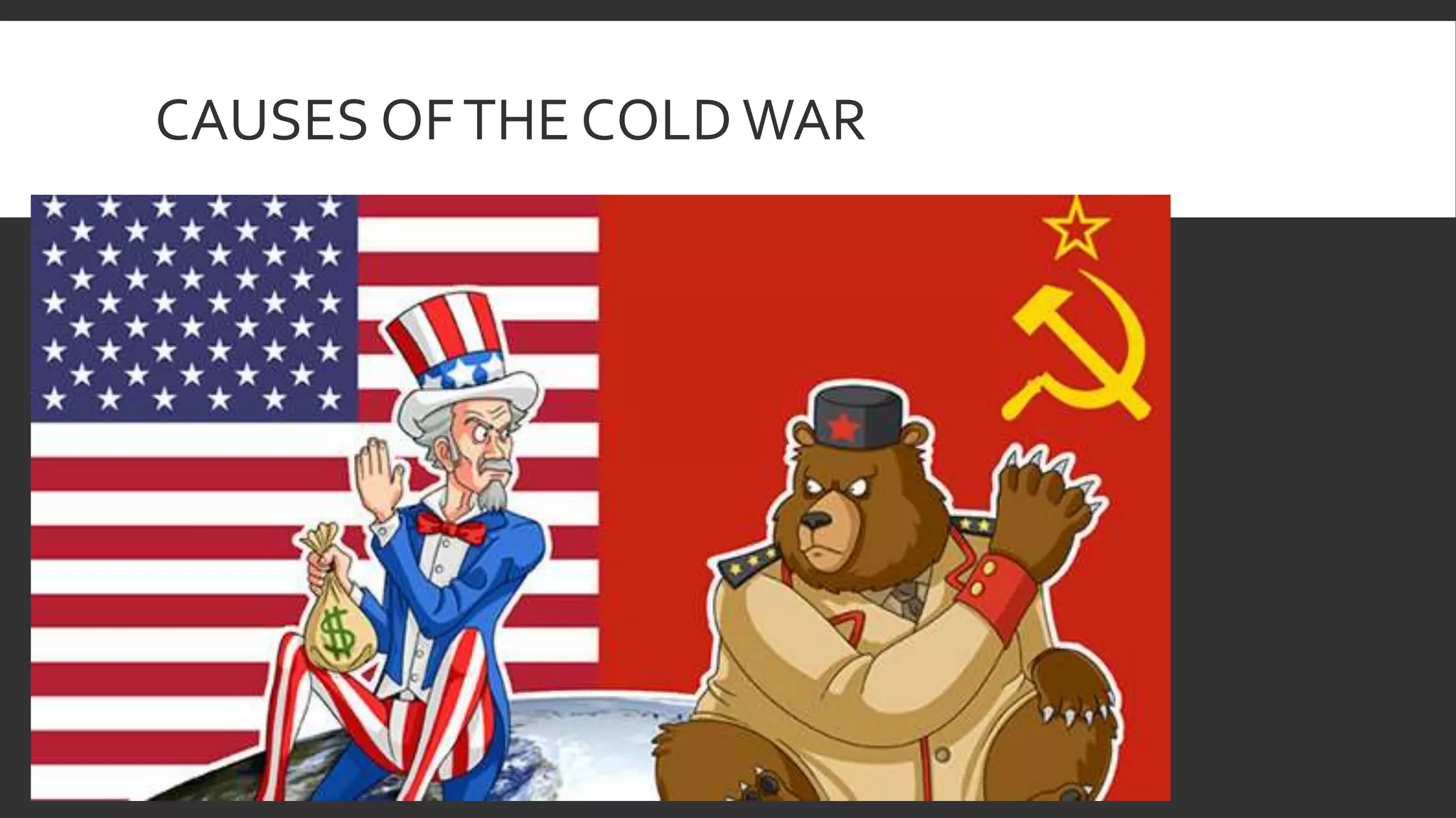 The outcome of World War II and the desire for balance of power between the US and Soviet Union contributed to the start of the Cold War. Specifically, at the Yalta Conference the allied powers agreed to split Germany and hold free elections in Eastern Europe, but the Soviets instead spread communism in Eastern Europe behind an "Iron Curtain." This caused the US to pursue a policy of containment against the spread of communism through initiatives like the Truman Doctrine and Marshall Plan and led to the formation of military alliances like NATO and the Warsaw Pact, dividing Europe between the Western and Soviet blocs.