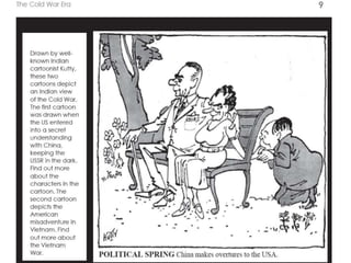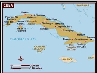 The document summarizes key events of the Cold War era Cuban Missile Crisis. In 1961, Soviet leader Nikita Khrushchev placed nuclear missiles in Cuba to counter U.S. threats. Three weeks later, American reconnaissance discovered the missiles. President Kennedy ordered a naval blockade of Cuba and threatened military action if Soviet ships approached. A confrontation was averted when Khrushchev agreed to remove the missiles to end the 13-day crisis, avoiding nuclear war but increasing Cold War tensions.