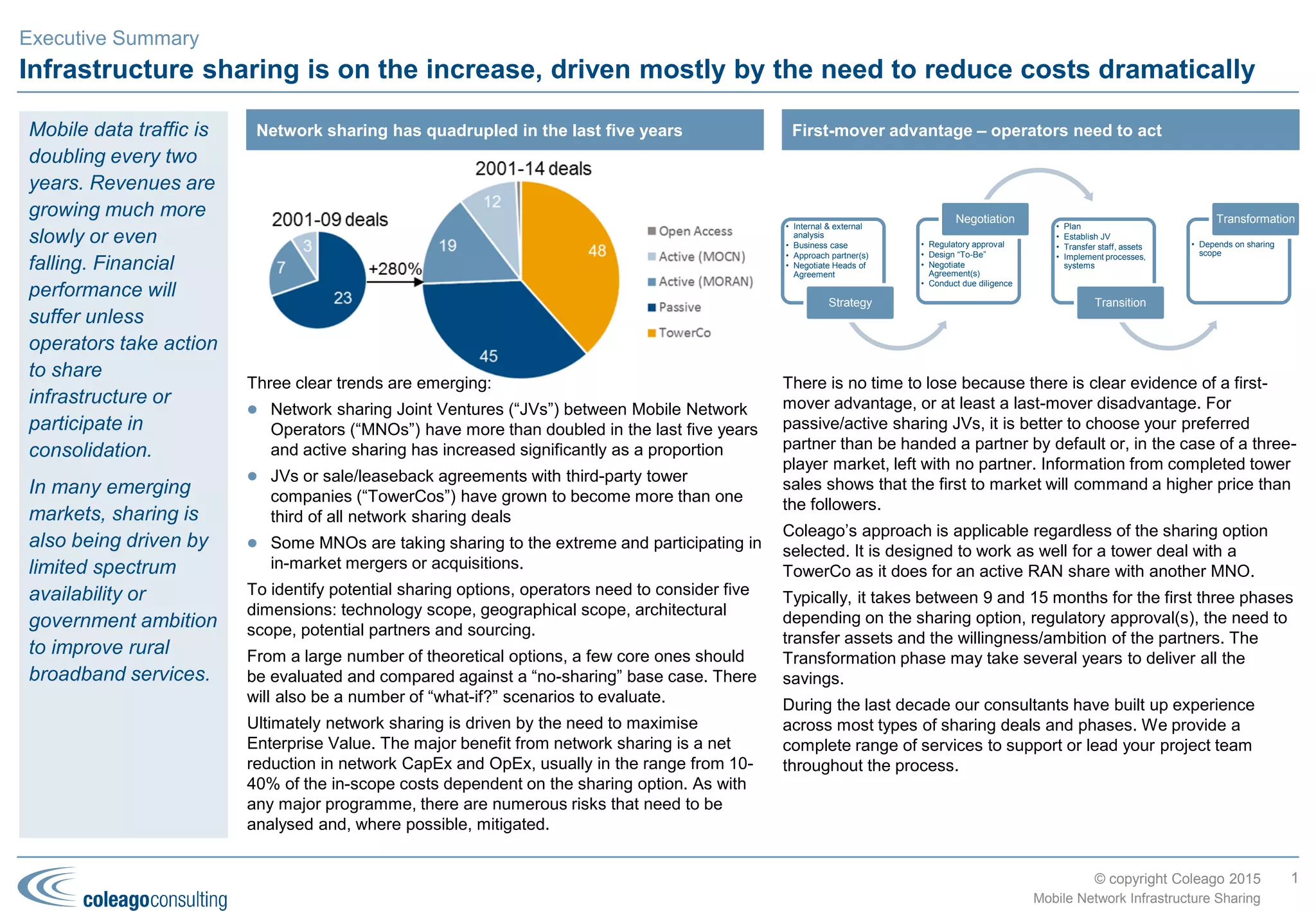The mobile network infrastructure sharing industry has seen significant growth since 2009, driven by increasing data traffic and the need for cost reduction among mobile network operators (MNOs). Key trends include joint ventures for sharing infrastructure, tower sale-and-leaseback deals, and initiatives aimed at expanding broadband coverage in rural areas. Future developments are likely to focus on enhanced spectrum sharing and the application of new technologies like NFV and SDN to facilitate further sharing opportunities.
