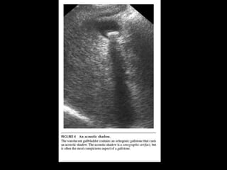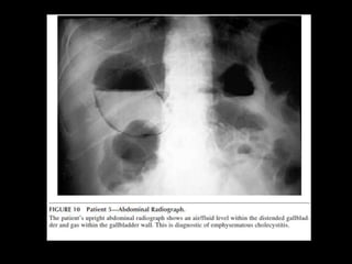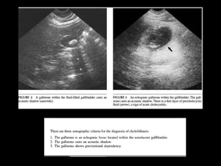 This patient presented with right upper quadrant pain that began as dull midepigastrium pain and later moved to the RUQ and flank. He vomited brown fluid and was unable to eat. Examination revealed tenderness in the RUQ and Murphy's sign. Ultrasound could not identify the gallbladder initially but was later seen on radiology ultrasound with stones. Laboratory results showed elevated WBC, glucose, ALT, AST, and lipase. The diagnosis was acute cholecystitis confirmed by ultrasound findings of gallbladder wall thickening, pericholecystic fluid, and sonographic Murphy's sign.