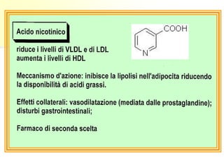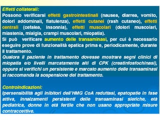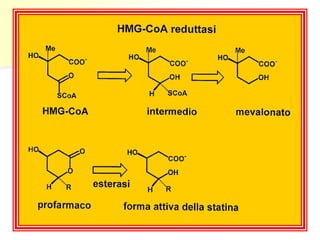 Il documento tratta del colesterolo, identificandolo come un lipide essenziale nel corpo umano, con un ruolo cruciale nelle membrane cellulari e nella sintesi di ormoni e vitamina D. Esamina inoltre il metabolismo del colesterolo, evidenziando le conseguenze cliniche di livelli elevati, come l'ipercolesterolemia e l'aterosclerosi, nonché i metodi farmacologici per la gestione di tali condizioni. Infine, vengono discussi i vari tipi di lipoproteine e la loro funzione nel trasporto di colesterolo e trigliceridi nel corpo.