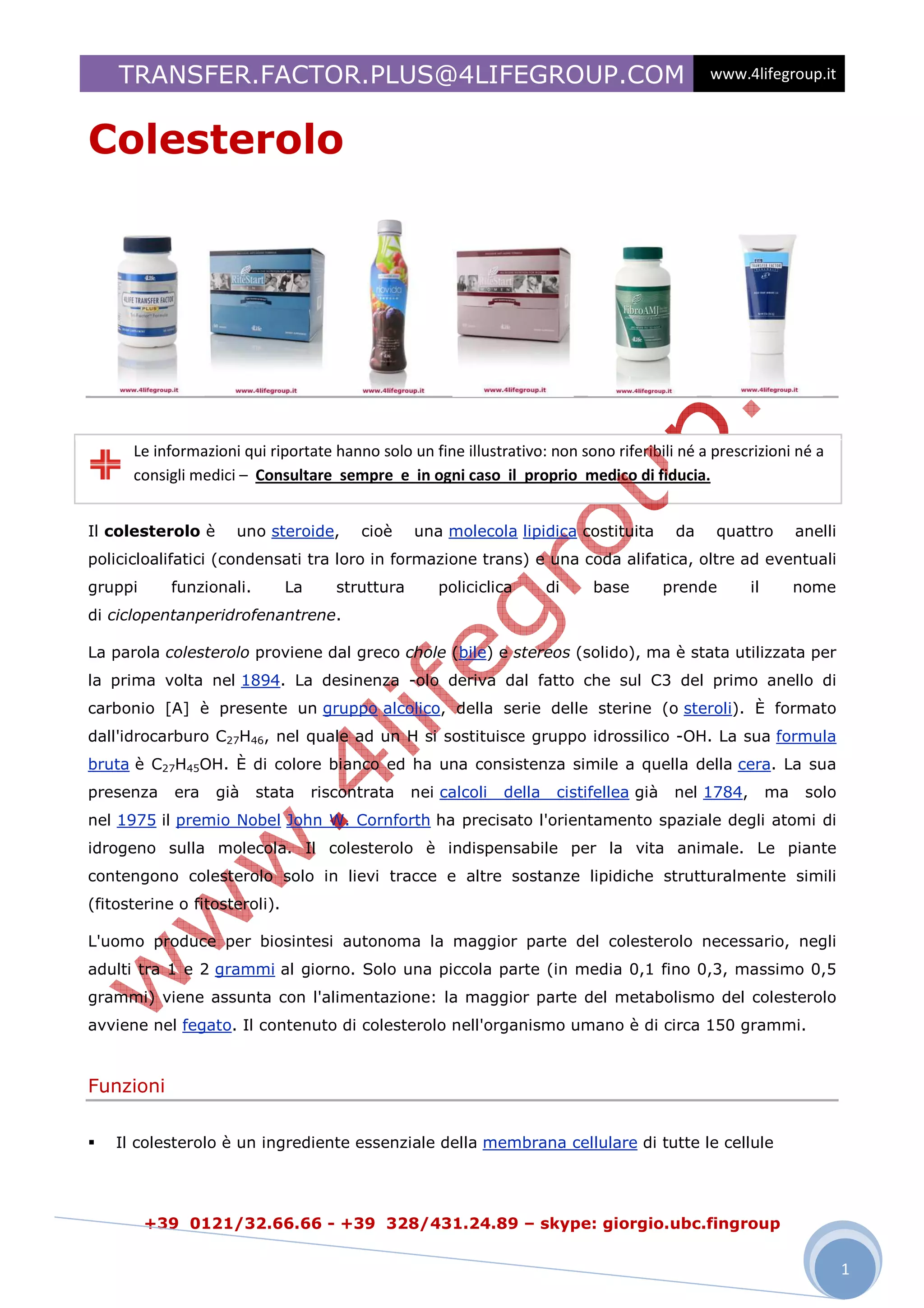 Il documento descrive il colesterolo, una molecola lipidica fondamentale per la vita animale e la sua biosintesi. Illustra il suo ruolo nelle membrane cellulari, nella sintesi degli ormoni e nel metabolismo, evidenziando anche la sua correlazione con la mortalità cardiovascolare. Riferisce studi epidemiologici che collegano la colesterolemia alla salute, avvertendo sui rischi di bassi e alti livelli di colesterolo nel sangue.