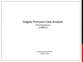 Colgate is facing increased competition in the toothbrush market and a decline in market share for its Classic and Plus lines. The introduction of the super premium segment has been successful, accounting for 35% of the market. Colgate is considering launching a new toothbrush, Precision, targeted at the super premium segment to focus on gum health. Precision has the potential to increase Colgate's market share to 7.4% in the first year and generate a profit of $14 million in the second year with $15 million spent on advertising. Positioning Precision as a mainstream product could gain an even higher market share and contribution margin for Colgate compared to a niche strategy.