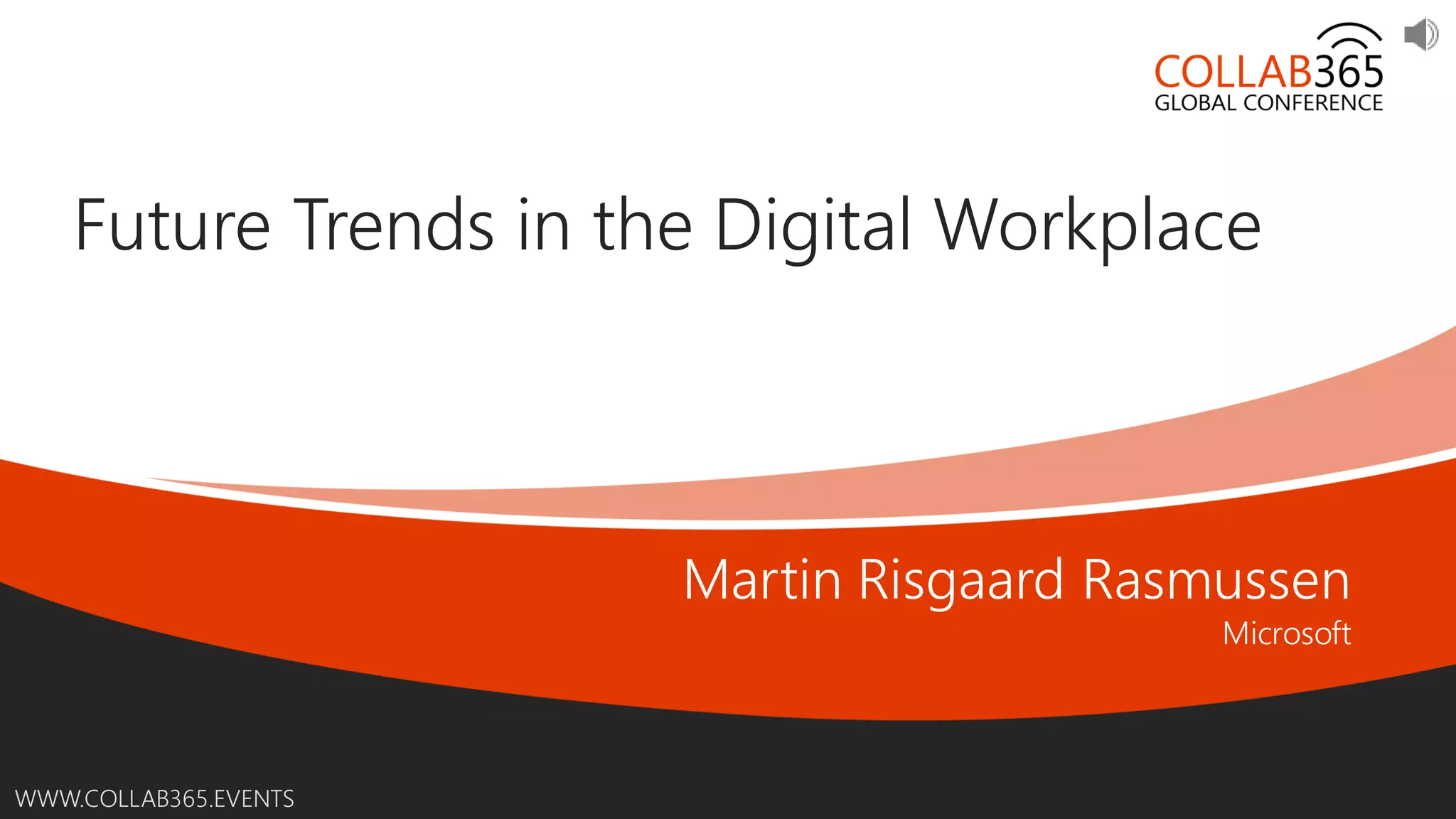 The document details an online conference on future trends in the digital workplace held on June 17-18, 2015, featuring insights from Martin Risgaard Rasmussen from Microsoft. Key trends discussed include the shift from technology-centric to people-centric approaches, the importance of organization and leadership in digital transformation, and the implications of widespread mobile access. The document also references Gartner's assessment of Microsoft’s leadership in multiple technology categories relevant to workplace collaboration and communication.