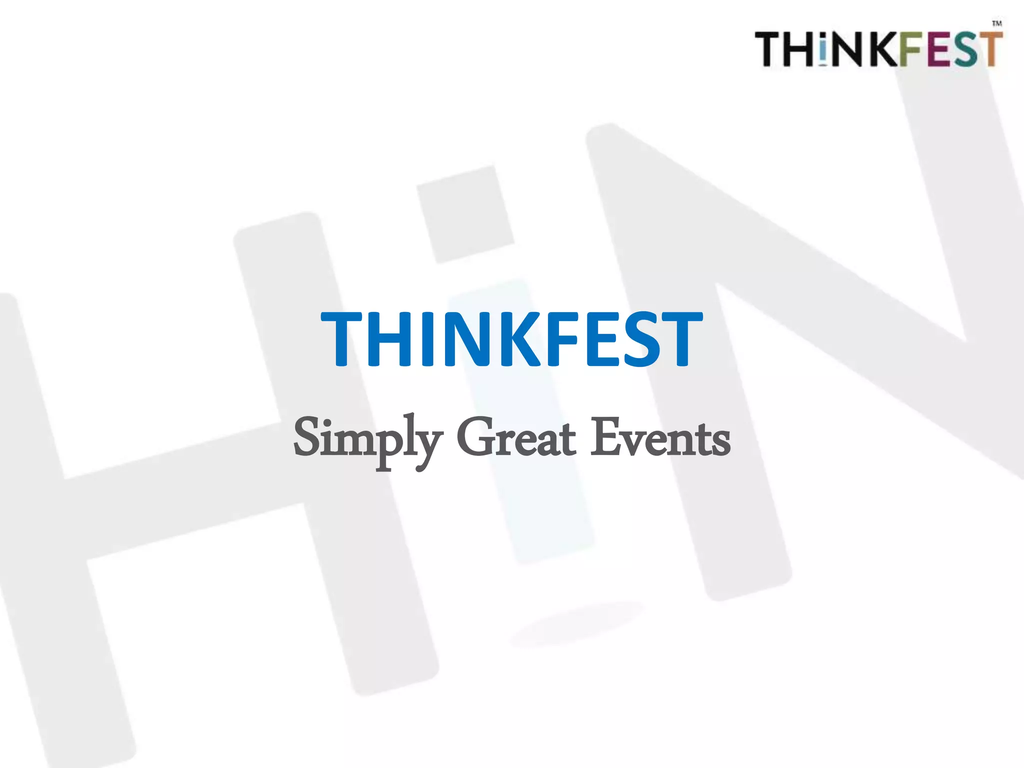 Thinkfest is an awards and events management provider with over 12 years of experience, focusing on collaboration and professionalism. They manage multiple annual award ceremonies and host over 100 networking events under their brand 'pathway2grow.' They seek experts and sponsors to support their events and foster mutually beneficial partnerships.