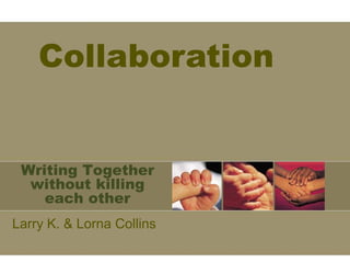 The document discusses the dynamics of collaborative writing, highlighting the advantages of diverse ideas and perspectives alongside potential disadvantages like incompatible styles and unequal workloads. It emphasizes the importance of understanding personal writing styles, choosing complementary collaborators, outlining the story, dividing tasks, and maintaining open communication throughout the process. Additionally, it advises on the need for editing, seeking feedback, taking breaks, and sharing responsibilities in order to enhance the collaborative experience and achieve a successful outcome.