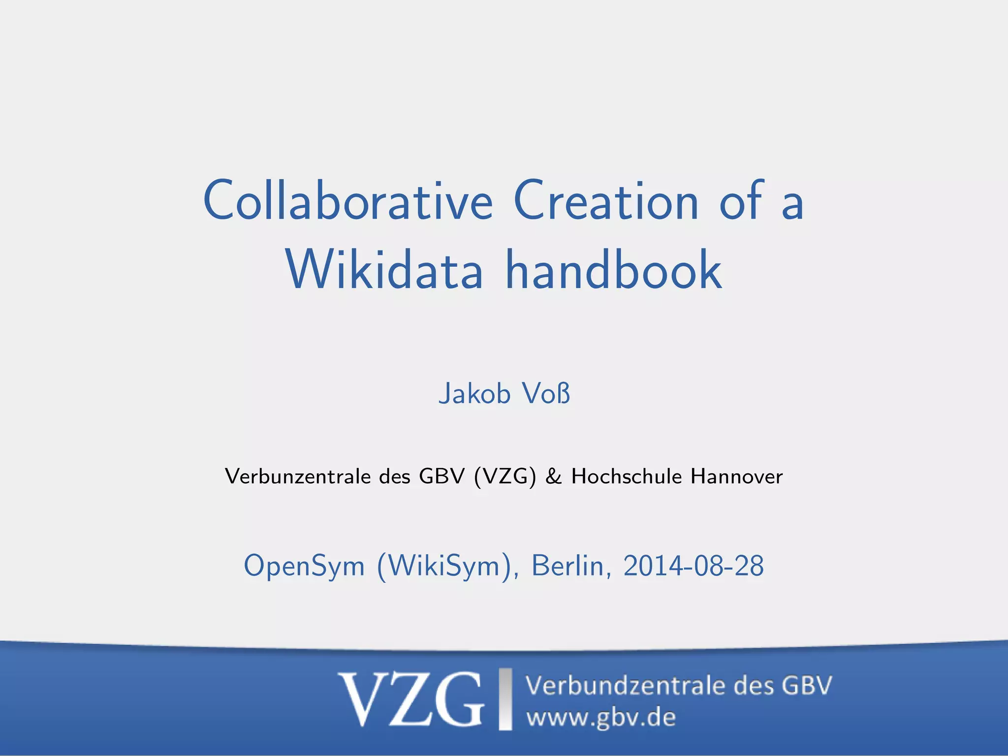 The document outlines the collaborative creation of a handbook on Wikidata, conducted by students and faculty from Hannover University of Applied Sciences in 2014. It discusses project management strategies, collaborative writing tools, and challenges faced during the handbook's development. Key lessons include the feasibility of producing such a handbook with untrained individuals and the importance of effective project management and collaborative platforms.