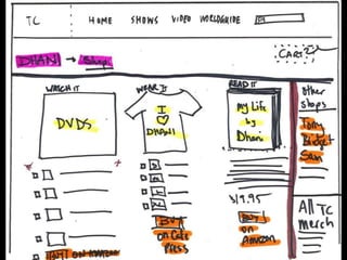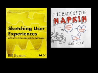 This document discusses collaborative sketching for user experience design. It defines collaborative sketching as benefiting from colleagues' participation to communicate and refine ideas through visualizing, generating, and iterating on sketches. An exercise is described where teams discuss features for an event website, sketch ideas silently, share sketches to provide feedback, and sketch again with new insights. Resources on design studio methodology, sketching tools, and prototyping with sketches are also provided.