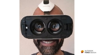 Kean Walmsley discusses the integration of VR technology with Autodesk's Forge Viewer, emphasizing the use of mobile VR SDKs like Google Cardboard and Oculus Mobile SDK for enhanced user experience. The document highlights challenges in user input and collaboration within VR environments, advocating for gesture-based and voice interactions. Additionally, it showcases a project from a VR hackathon aiming to create a synchronized web-based VR experience for multiple users through a master control page.