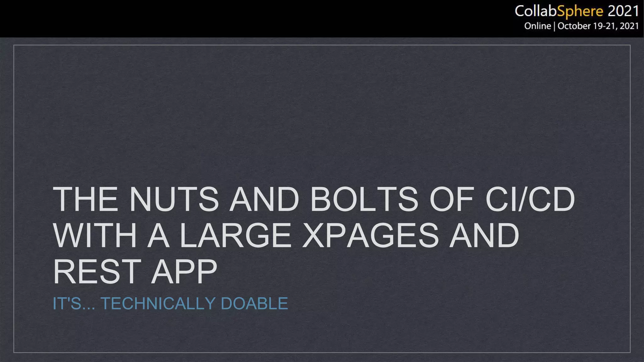 The document discusses the implementation of continuous integration and continuous deployment (CI/CD) for a large application built with XPages and REST services. It details the use of various tools and technologies, primarily Maven and Docker, highlighting techniques for building, testing, and deploying the application in multiple runtime environments. Additionally, it outlines the complexities involved in managing dependencies and adapting the code for compatibility across different platforms.
