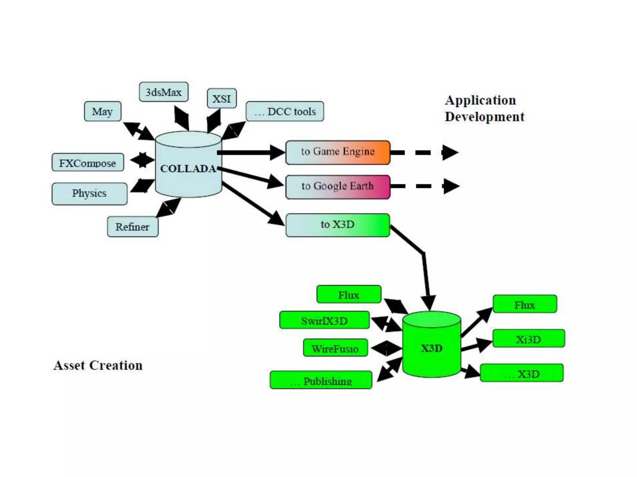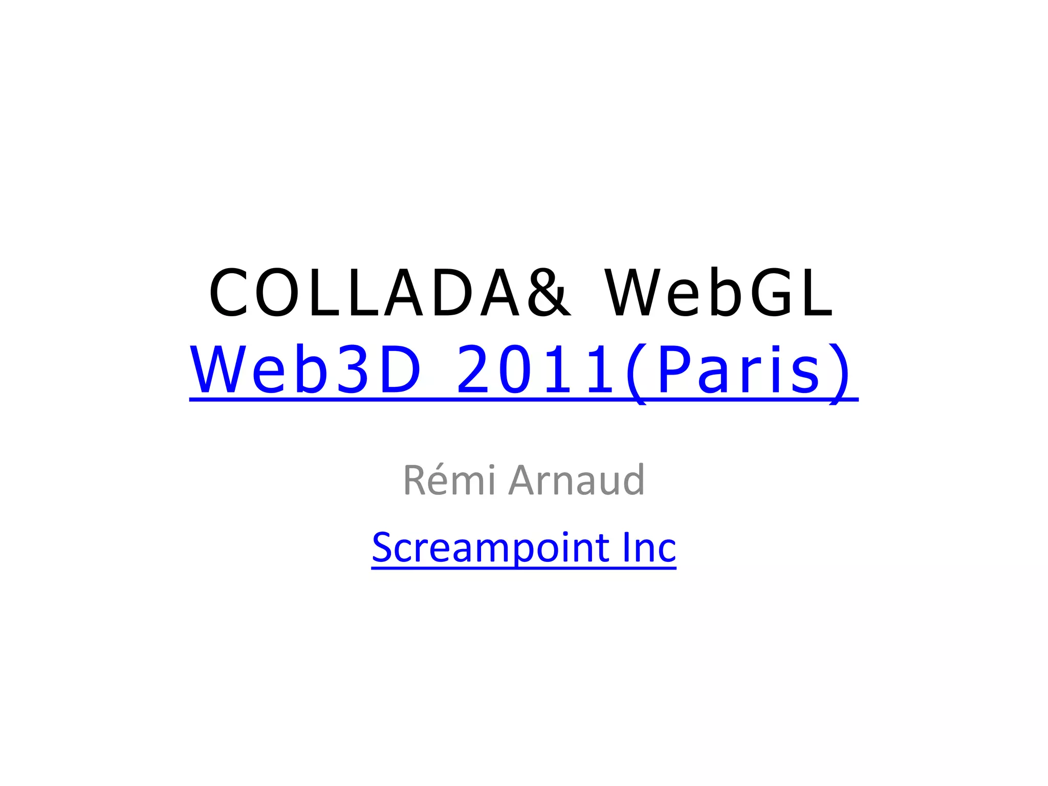 WebGL and COLLADA were discussed as technologies for 3D rendering and asset interchange on the web. The presentation covered the history and capabilities of both standards. It also described approaches for loading COLLADA assets into WebGL, such as preprocessing COLLADA into JSON or loading XML directly and parsing it with JavaScript. Optimizing COLLADA assets for WebGL rendering through techniques like quantization and compression was also mentioned.