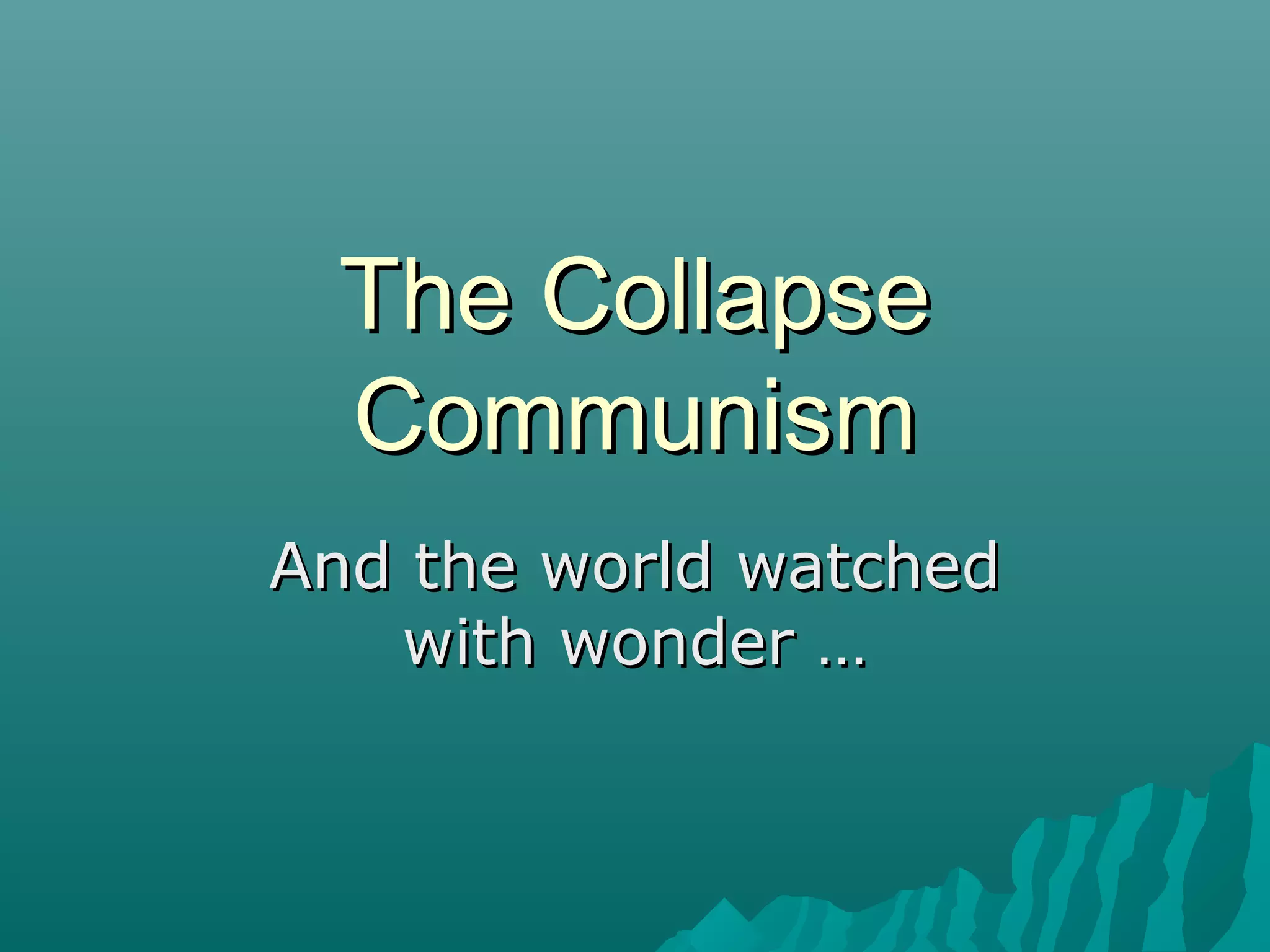 Mikhail Gorbachev implemented reforms in the Soviet Union known as glasnost (openness) and perestroika (restructuring) in an attempt to save communism and the Soviet system. This included decentralizing the economy, reducing arms spending, and allowing more freedom of speech. However, the reforms were too slow and failed to address economic problems. Gorbachev's relaxation of control contributed to the collapse of other Eastern bloc communist governments and the ultimate dissolution of the Soviet Union in 1991, bringing an end to the Cold War.