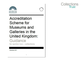 The Collections Trust seminar introduces attendees to the work of the Collections Trust and excellence in collections management. It covers understanding audiences, managing change in museums, and introduces the Excellence in Collections management model and standards. Attendees are encouraged to participate actively and network. Resources provided include information sheets, slides, and feedback forms.
