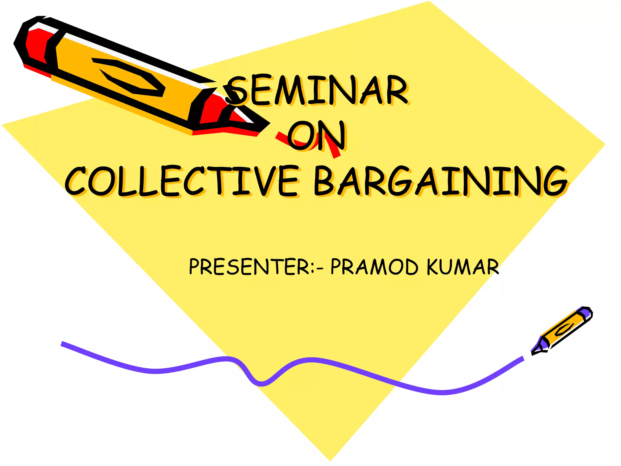This document provides an overview of collective bargaining. It defines collective bargaining as a process of discussion and negotiation between two parties, one being a group of employees, regarding terms and conditions of employment. The key points covered include: