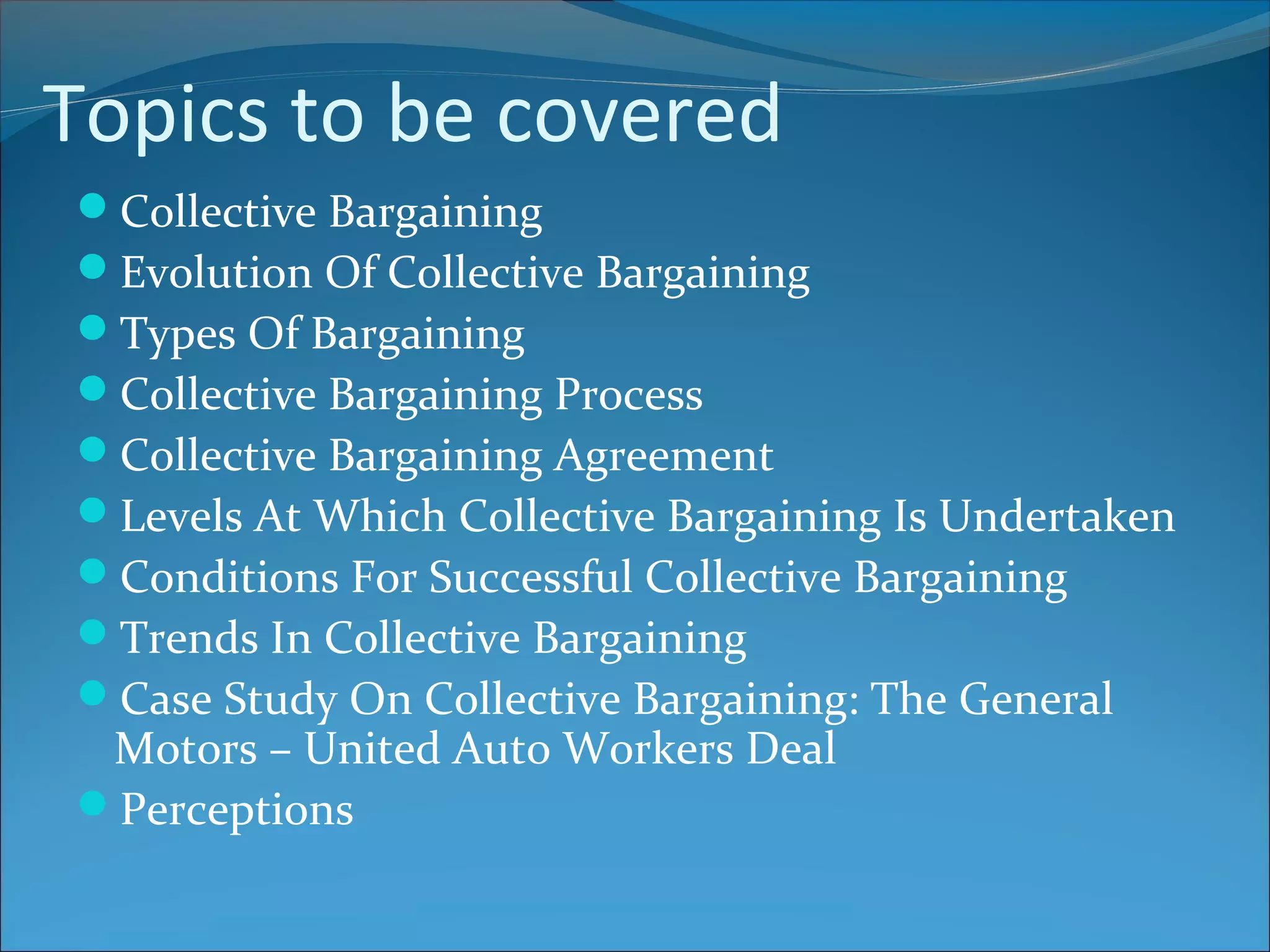 This document discusses collective bargaining, including its definition, evolution, types, process, agreements, levels, conditions for success, trends, and perceptions. Collective bargaining is a negotiation process between labor unions and employers to determine wages, hours, rules and working conditions. It aims to find common ground to reconcile conflicting interests through proposals and counterproposals. Key factors for successful collective bargaining include trade union recognition, good faith efforts, and adherence to reached agreements.