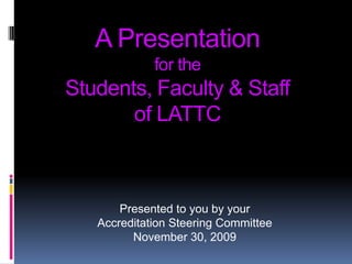 This document discusses the various planning cycles and how they relate to each other at LATTC. It outlines the Strategic Master Plan, Educational Master Plan, Technology Enhancement Master Plan, and Facilities Master Plan. These plans have different update cycles and link to curriculum development and program review. The Strategic Master Plan establishes priorities that the other plans are designed around, like student success, growth, and community development. New curriculum and program reviews help assess whether these priorities are being met. The planning cycles are meant to be ongoing and ensure the college mission is achieved through continuous assessment, evaluation, and updates across all plans.