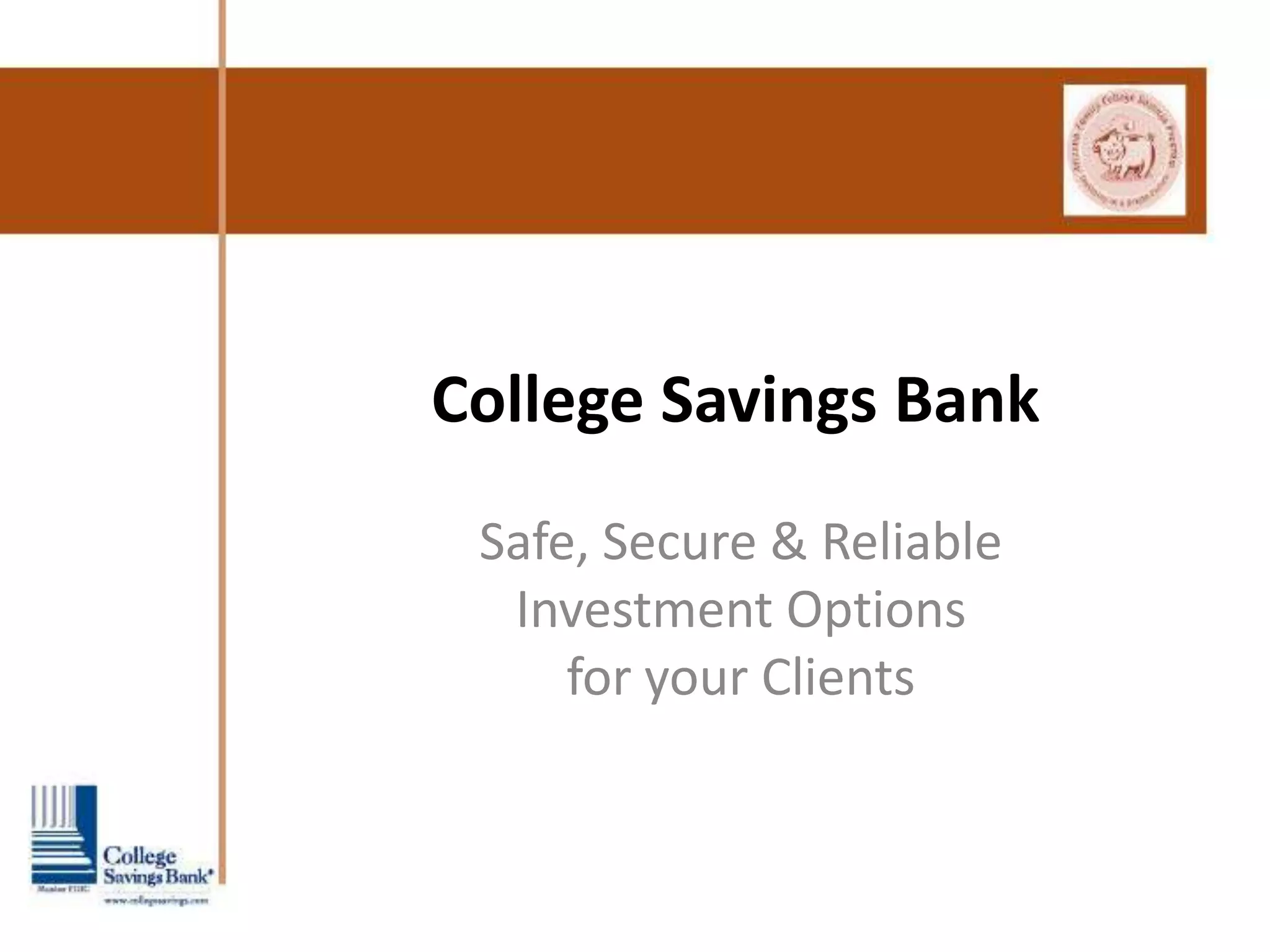 College Savings Bank has been helping families save for higher education since 1987 through state 529 college savings plans like the Arizona Family College Savings Program, with a mission to treat beneficiaries like family and provide reliable investment options through advisors. The document provides information on Jason Lampa, a representative who has raised over $2 billion for the company, and outlines the company's products, benefits for clients and advisors, and answers common questions.
