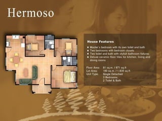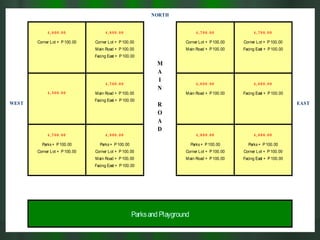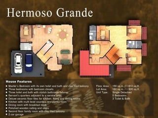 The document outlines various house types, their specifications, and pricing in a residential development, including different phases and amenities available. It details features such as planned community facilities, pricing structures, reservation fees, and financing options for potential buyers. Additionally, it includes terms for in-house financing, payment plans, and necessary conditions for move-in eligibility.