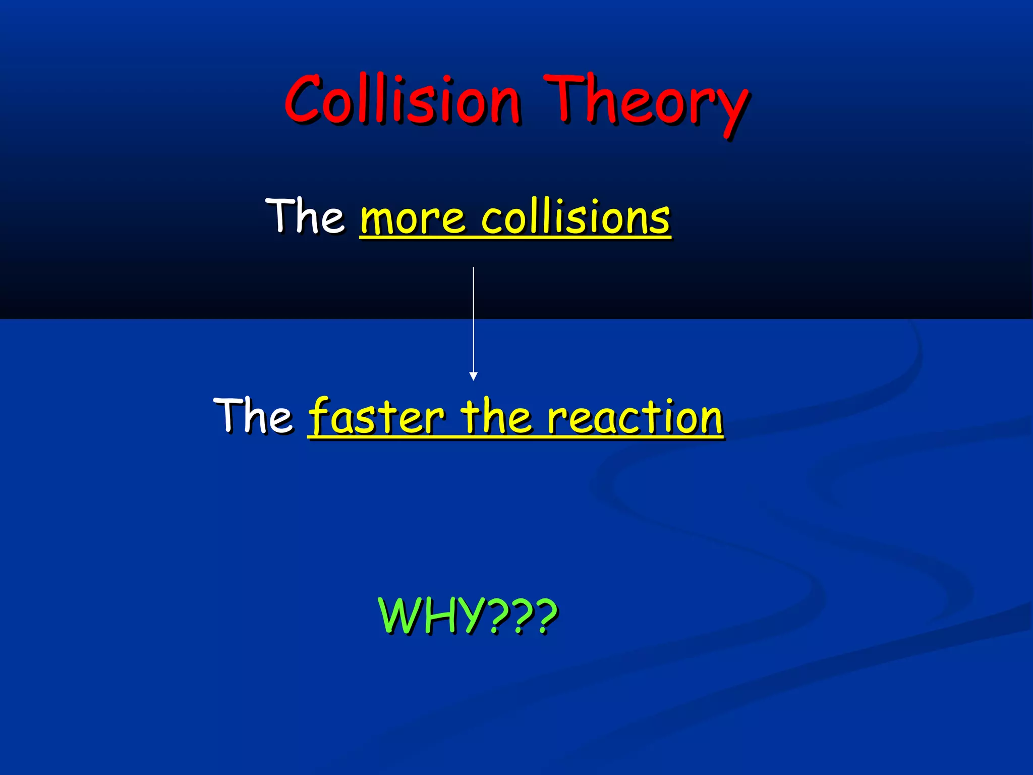 Particles are constantly moving and colliding with each other. The more collisions that occur between particles, the faster reactions take place. For a collision between reactant molecules or atoms to be successful and result in new bonds, the particles must collide with sufficient speed, energy, and force for the atoms to come close enough together to share electrons.