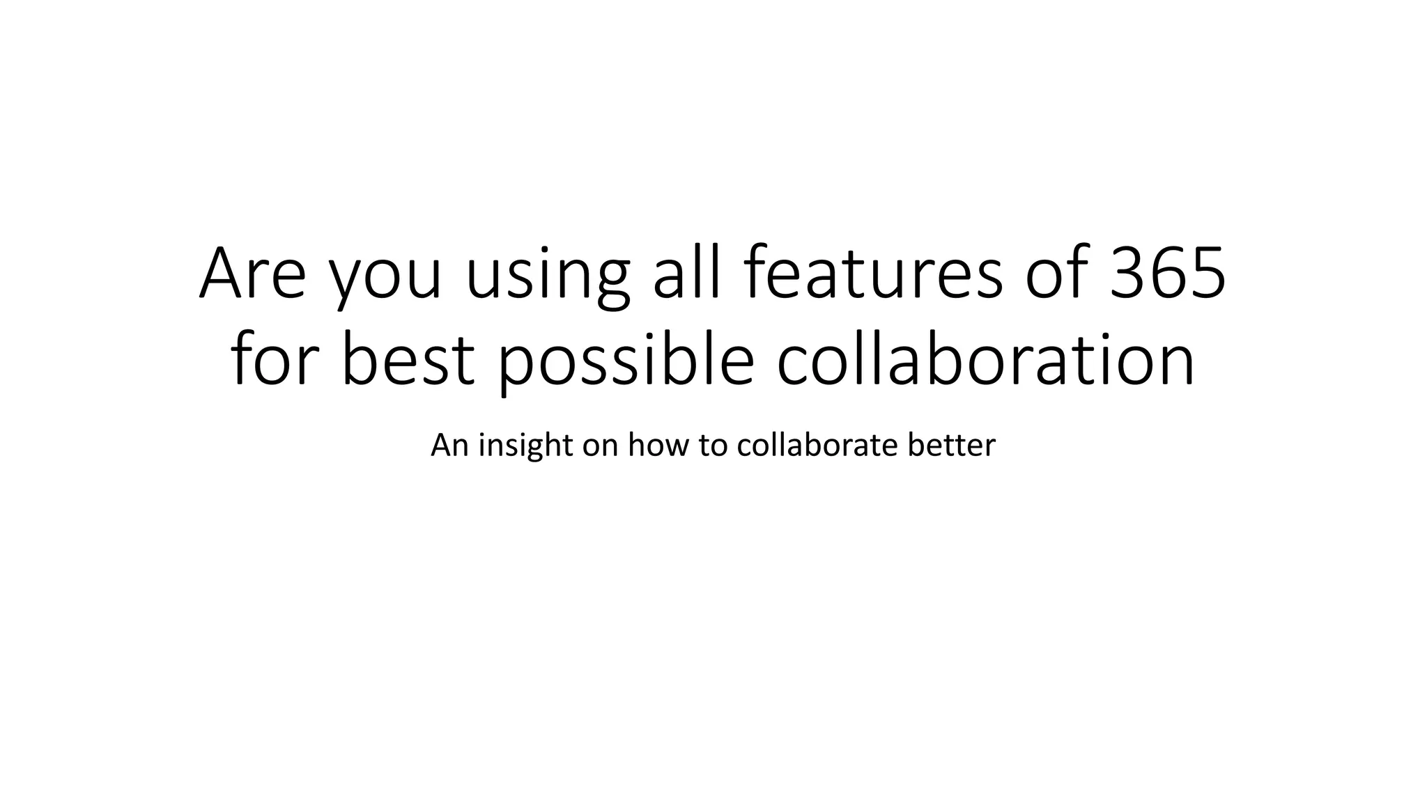 The document discusses the need for a strategic approach to using Microsoft Teams and other Microsoft 365 features to enhance collaboration within teams and organizations. It emphasizes the importance of optimizing processes, control over work environments, and integrating communication tools for better productivity and performance measurement. Additionally, it highlights the challenges posed by multiple collaboration tools and outlines recommendations for effective system integration and analytics to support team wellbeing and performance.