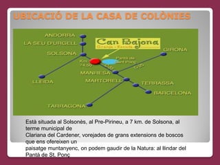 Està situada al Solsonès, al Pre-Pirineu, a 7 km. de Solsona, al